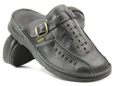 Wygodne klapki męskie z klamrą - HELIOS Komfort 828, czarne