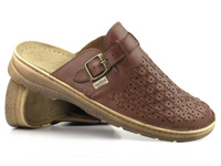 Klapki męskie z ażurową, plecioną i regulowaną cholewką - HELIOS Komfort 807, brązowe