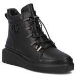 Skórzane sneakersy damskie na platformie - Cambell 25-19343, czarne