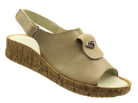 Skórzane sandały damskie z zabudowanym przodem ecru Helios Komfort 152