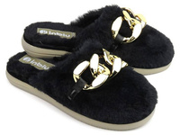 Futerkowe kapcie damskie z łańcuchem - INBLU EK-06, czarne