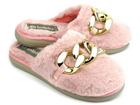 Futerkowe kapcie damskie z łańcuchem - INBLU EK-06, różowe