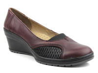 Skórzane półbuty damskie na koturnie -HELIOS Komfort 732, wiśniowe