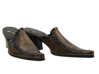 Skórzane klapki damskie na obcasie brązowe Cambell 25-64300