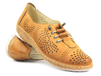 Skórzane półbuty damskie z ażurową cholewką - Wasak 0626, rude