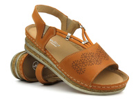 Skórzane sandały damskie na delikatnym koturnie - HELIOS Komfort 125, jasnobrązowe
