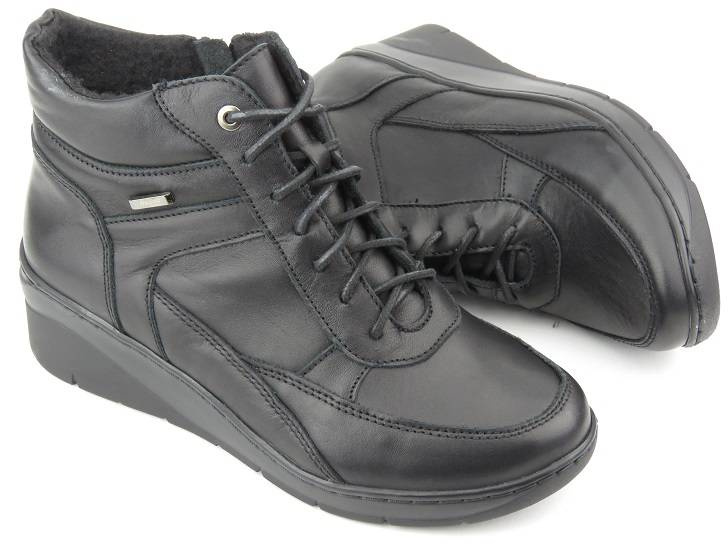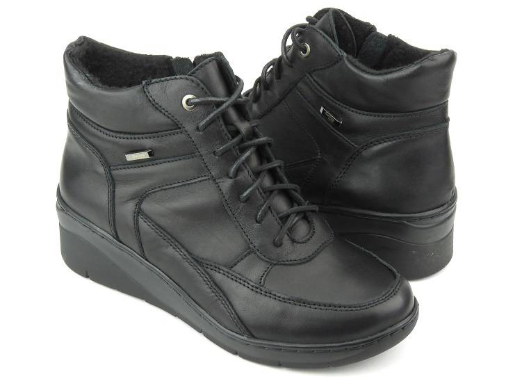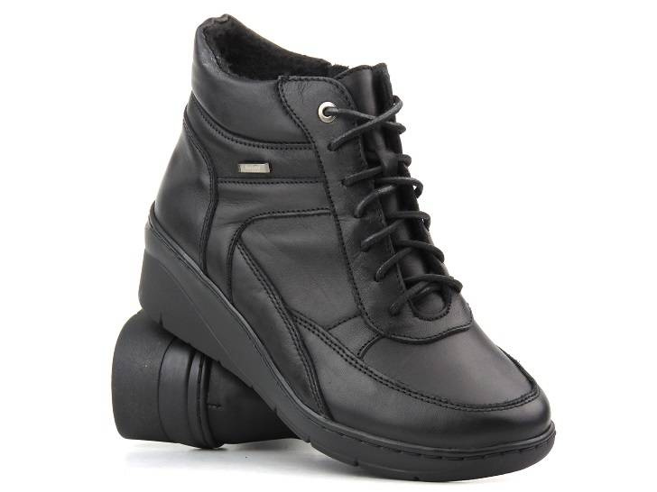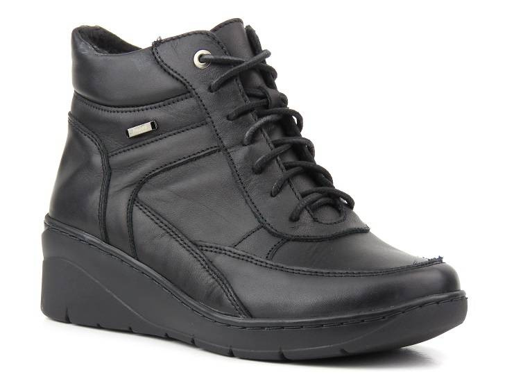 Skórzane botki damskie w sportowym stylu - HELIOS Komfort 568, czarne