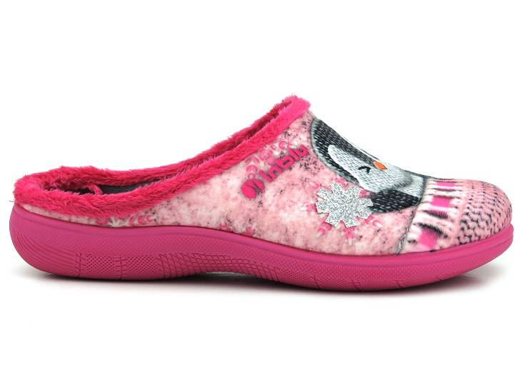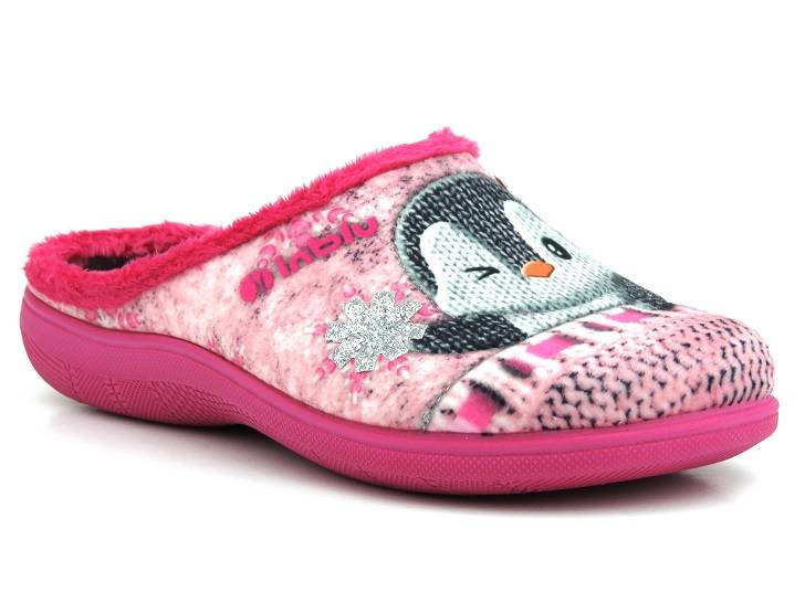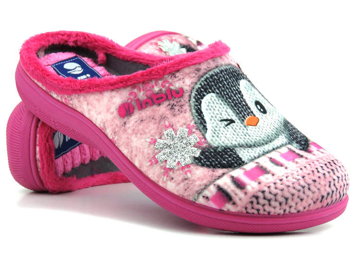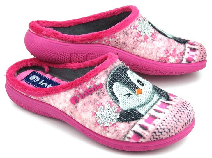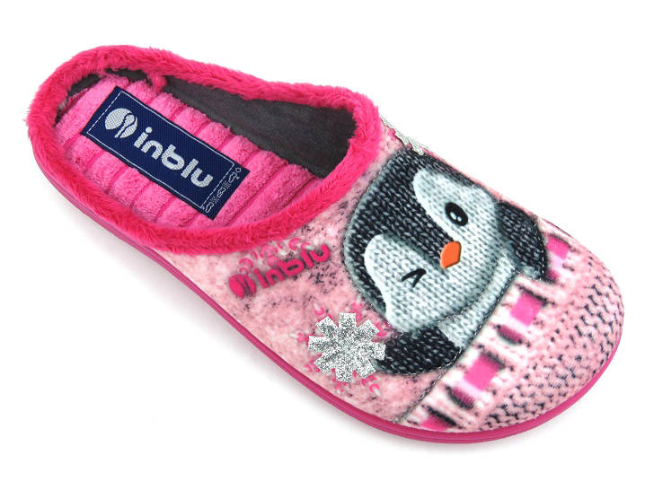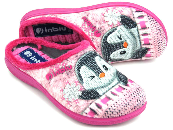Kapcie damskie, młodzieżowe z miękką wkładką - INBLU EC-81, różowe z pingwinkiem