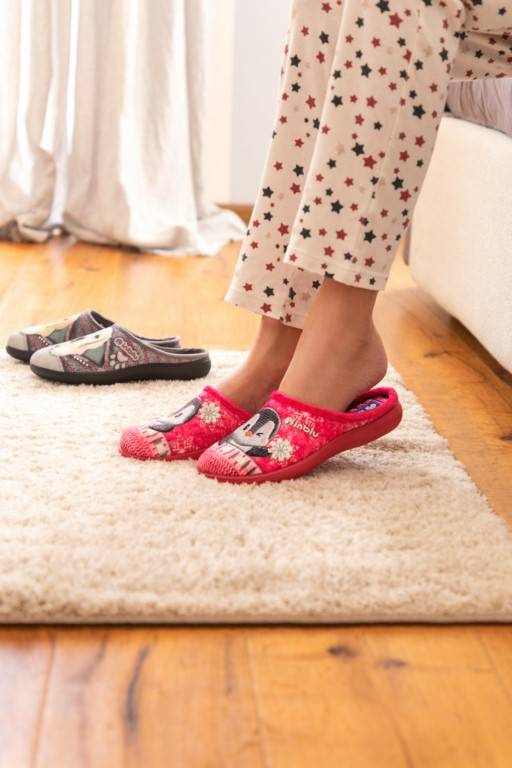 Różowe kapcie Inblu w urocze pingwinki świetnie sprawdzą się w każdym domu.