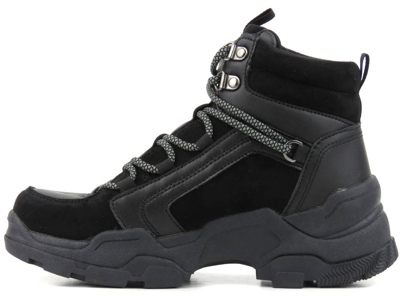 Cholewka za kostkę została osadzona na traperowej, antypoślizgowej podeszwie z platformą 3.5 cm. Dzięki swej grubości, dobrze izoluje od zimna i amortyzuje nierówności powierzchni.