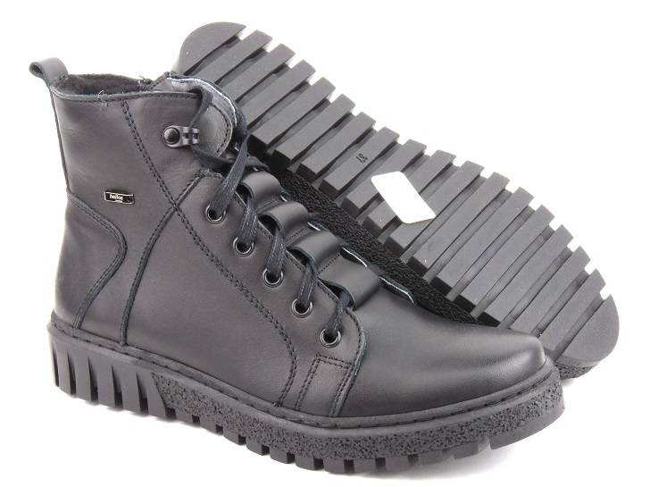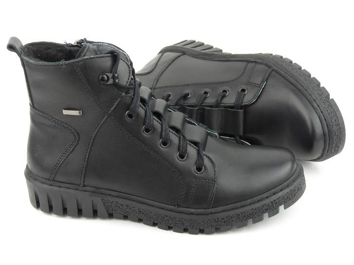 Skórzane trapery damskie ocieplone wełną - HELIOS Komfort 577, czarne 3