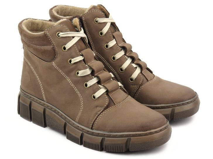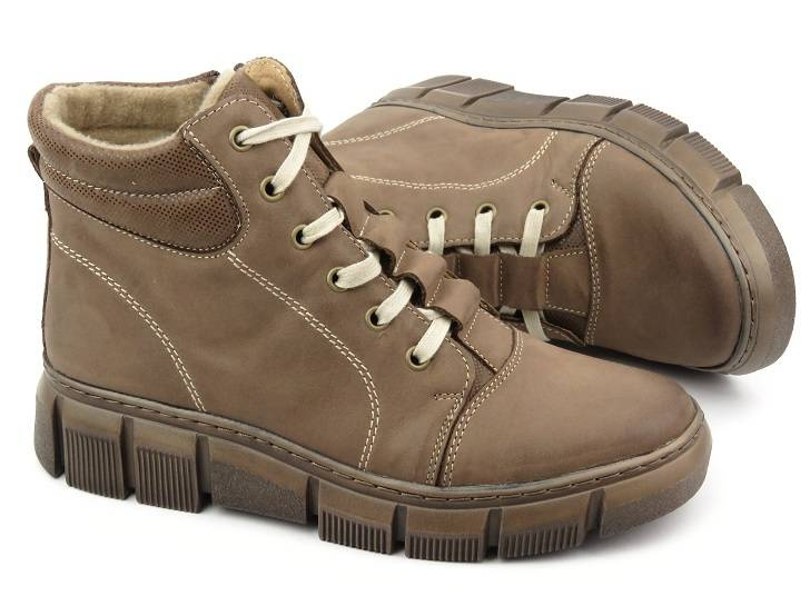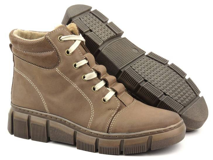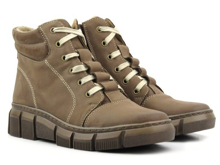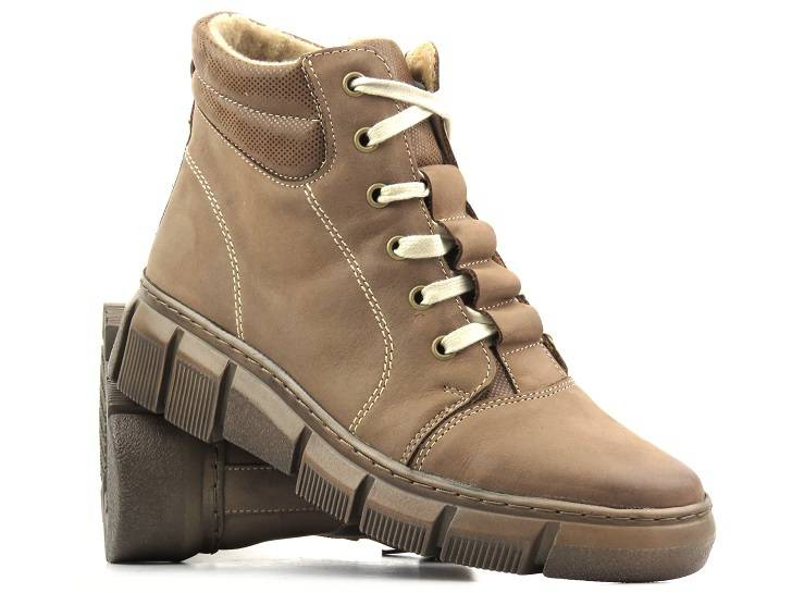 Ocieplane botki damskie sportowe - HELIOS Komfort 562S, ciemny beż