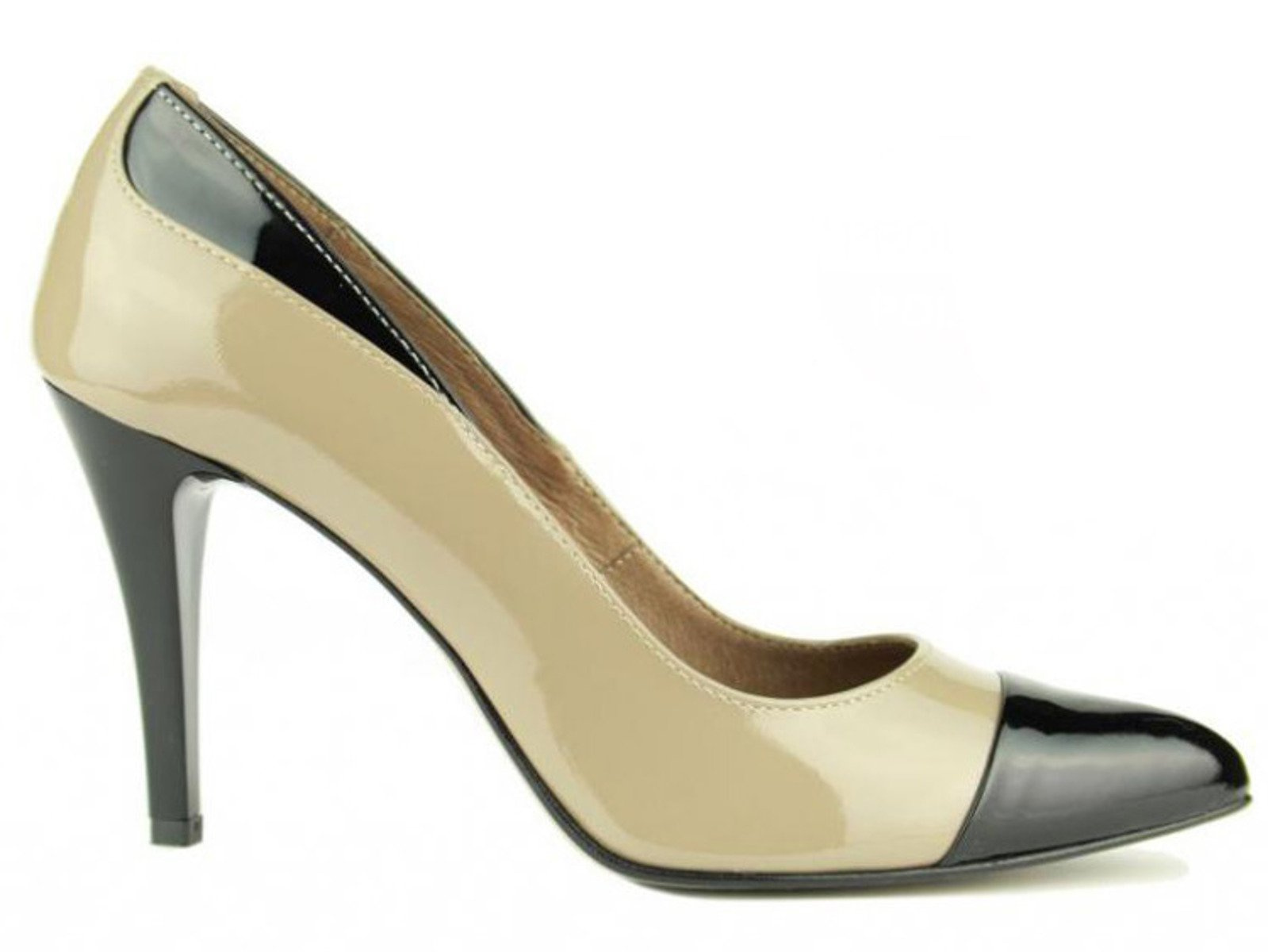 Czółenka damskie renomowanej polskiej marki Gerard wykonane zostały z wysokiej jakości skóry naturalnej lakierowanej. Czarny i beżowy kolor tworzą śliczne połączenie. Wkładka i obszycie z miękkiej skóry zapewniają odpowiedni komfort dla stóp. 9-centymetrowy obcas na szpilce każdej kobiecie doda uroku i zmysłowości.