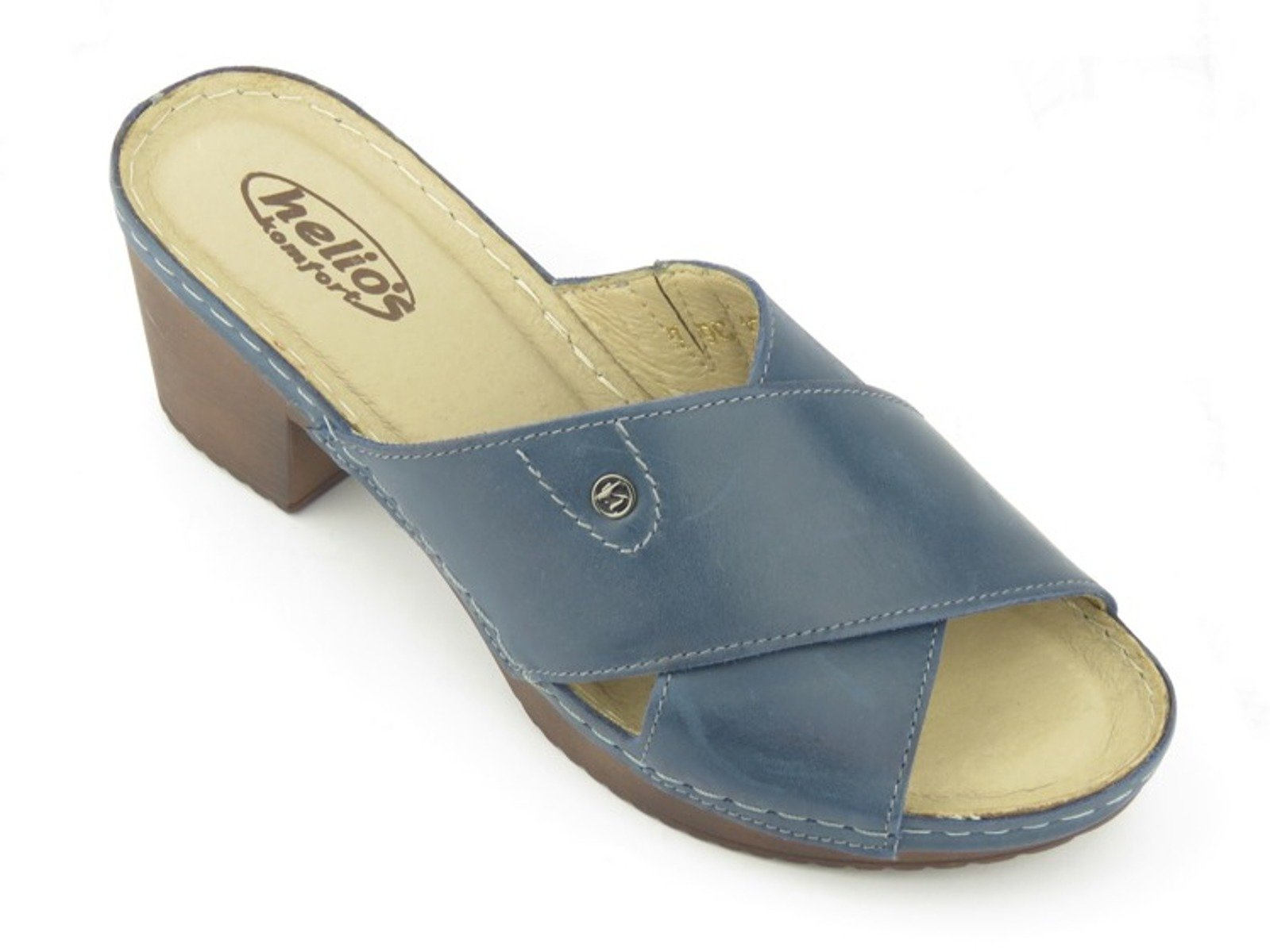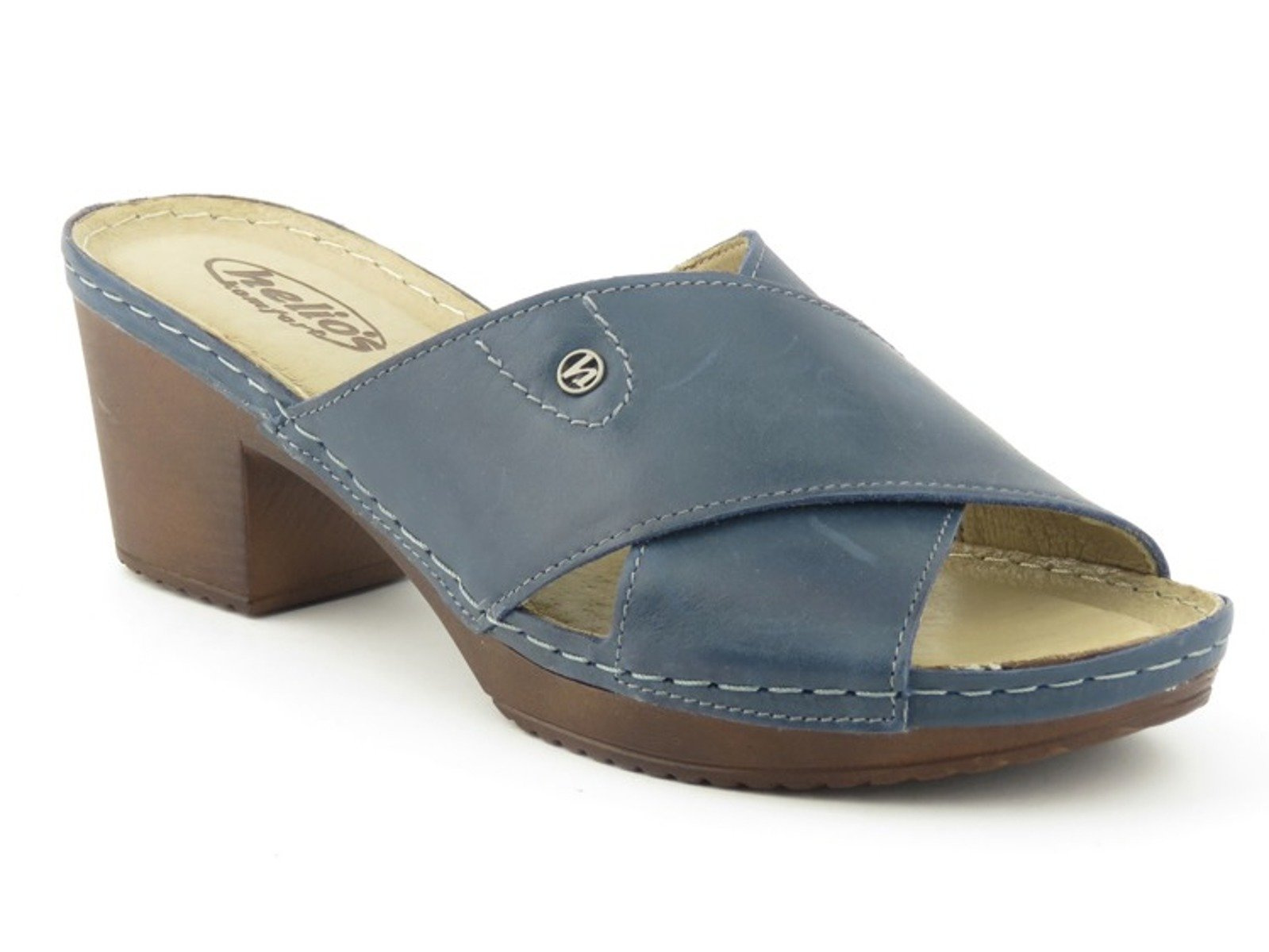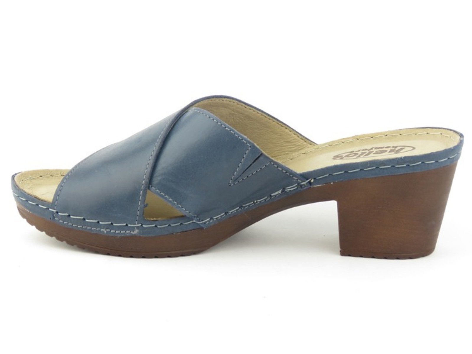 Skórzane klapki damskie na obcasie - HELIOS KOMFORT 224, granatowe