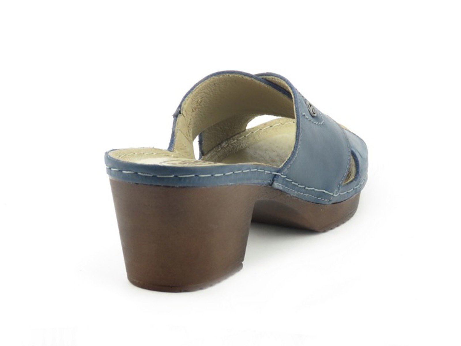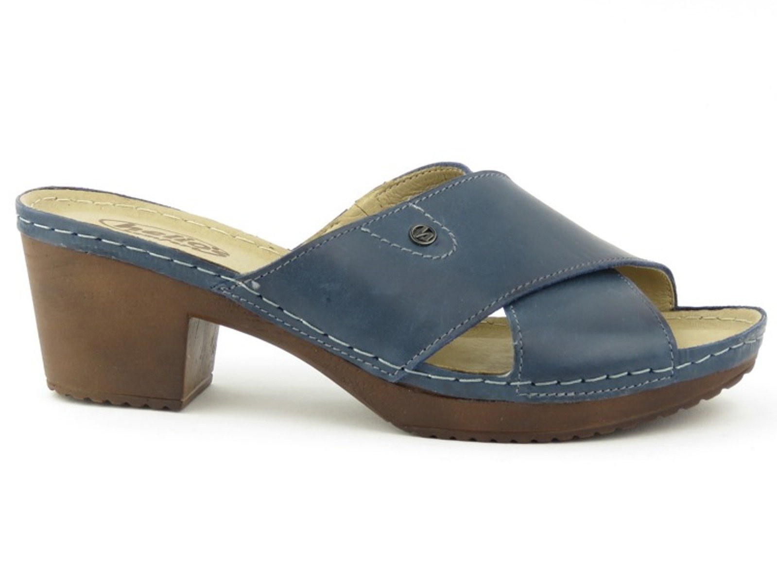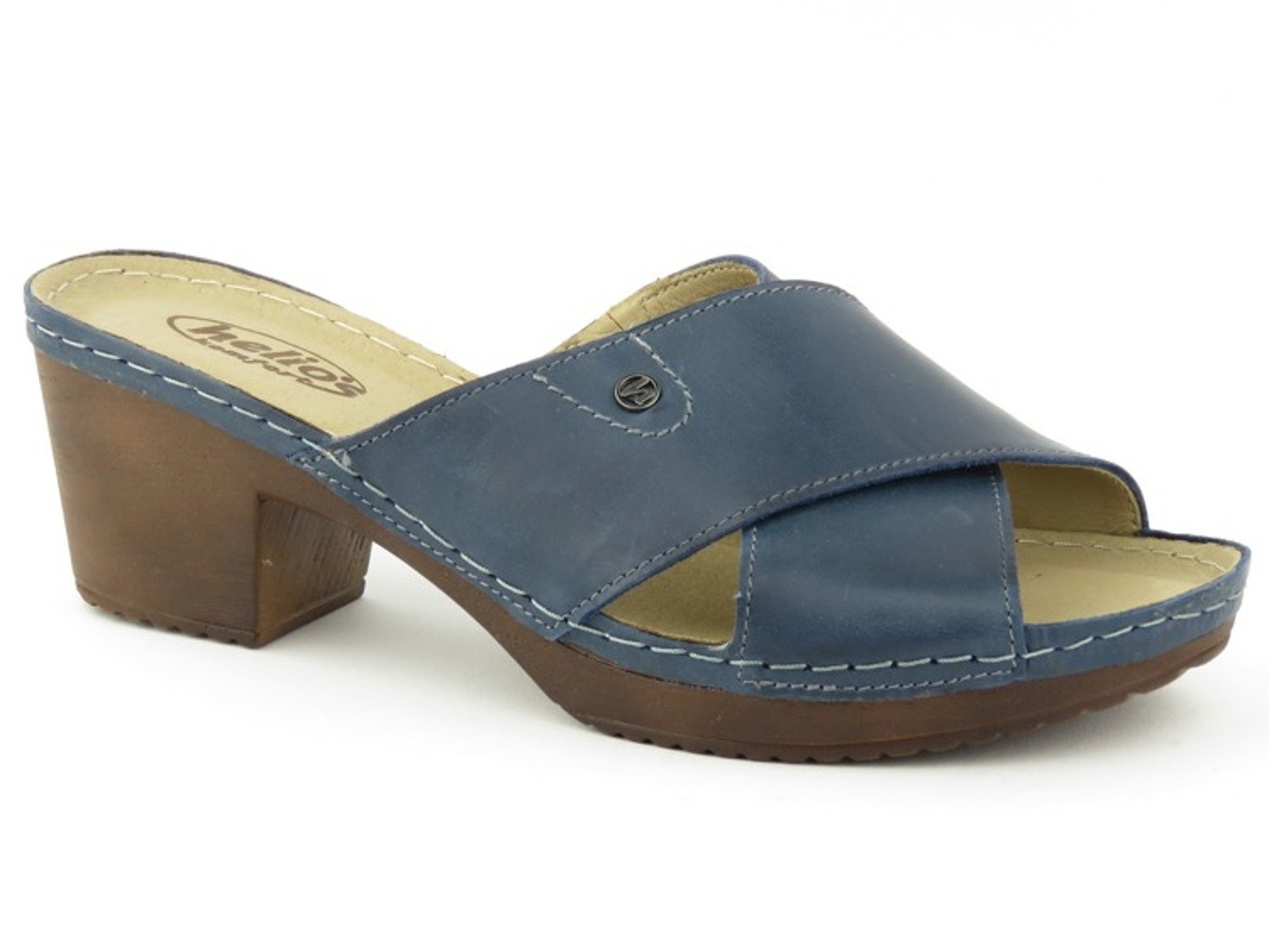 Skórzane klapki damskie na obcasie - HELIOS KOMFORT 224, granatowe