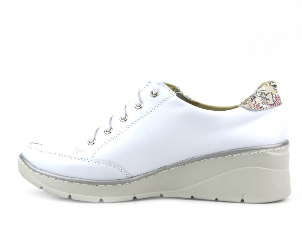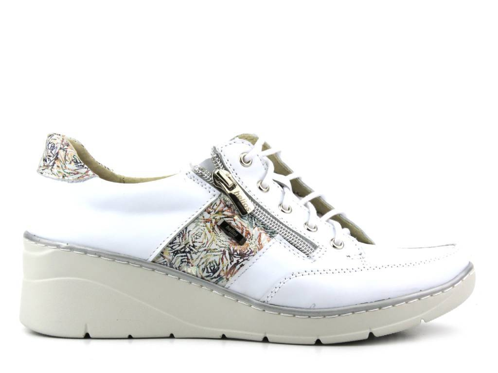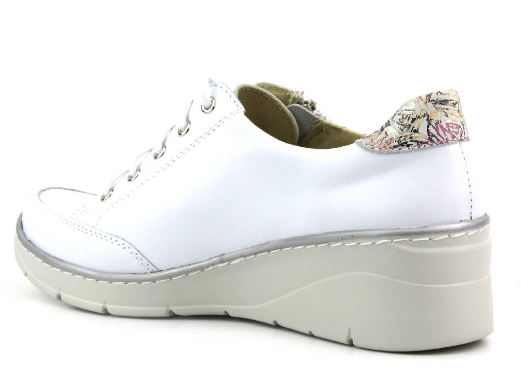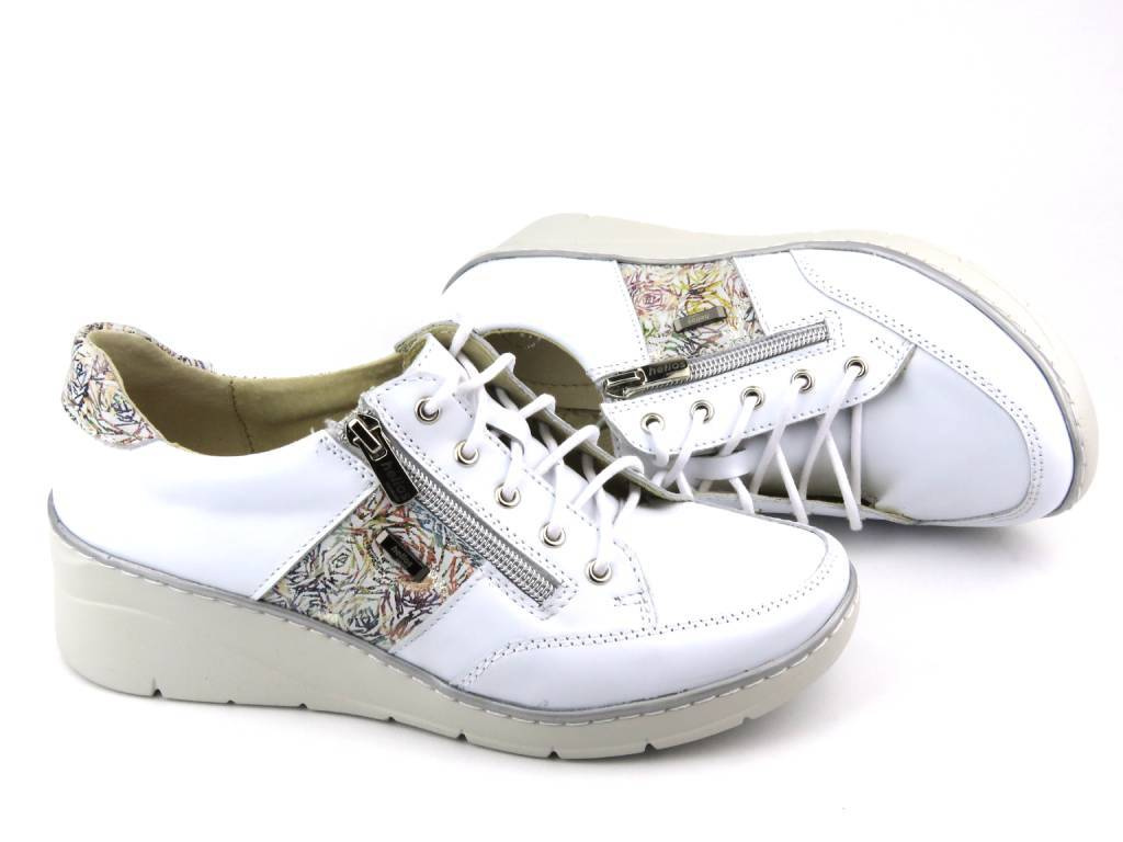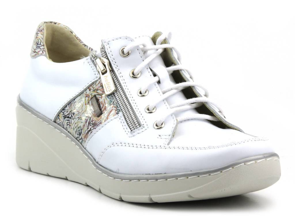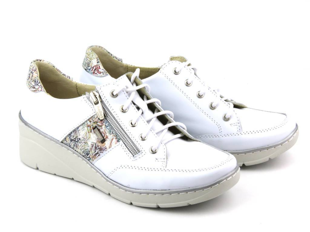 Skórzane półbuty damskie z ozdobnymi kwiatami - HELIOS Komfort 406, białe 2