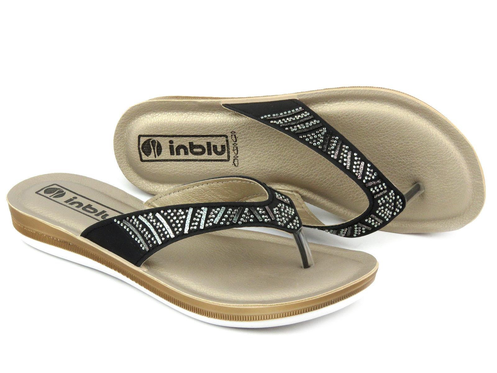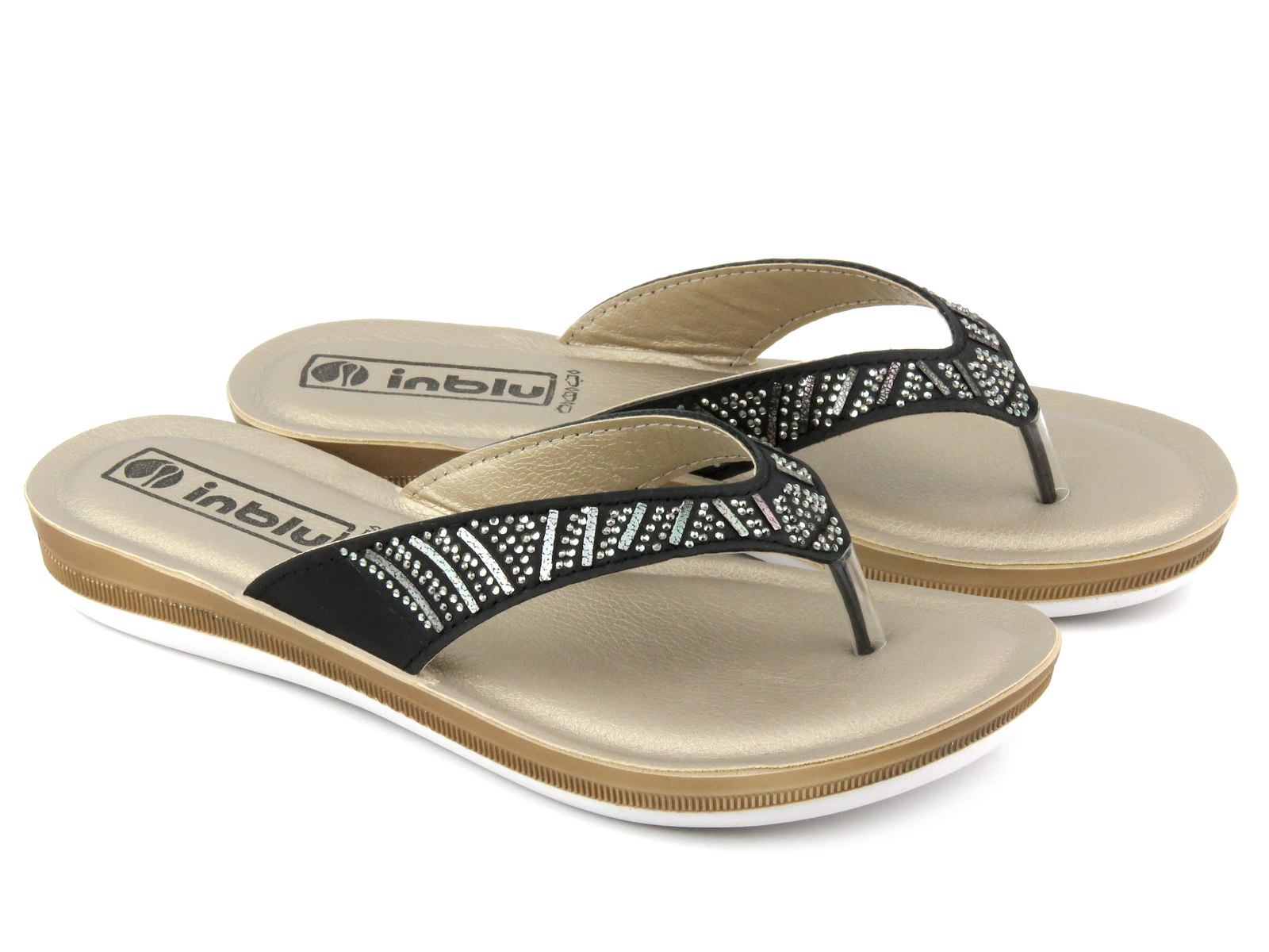 Japonki damskie na płaskiej podeszwie - INBLU BA-47, czarne