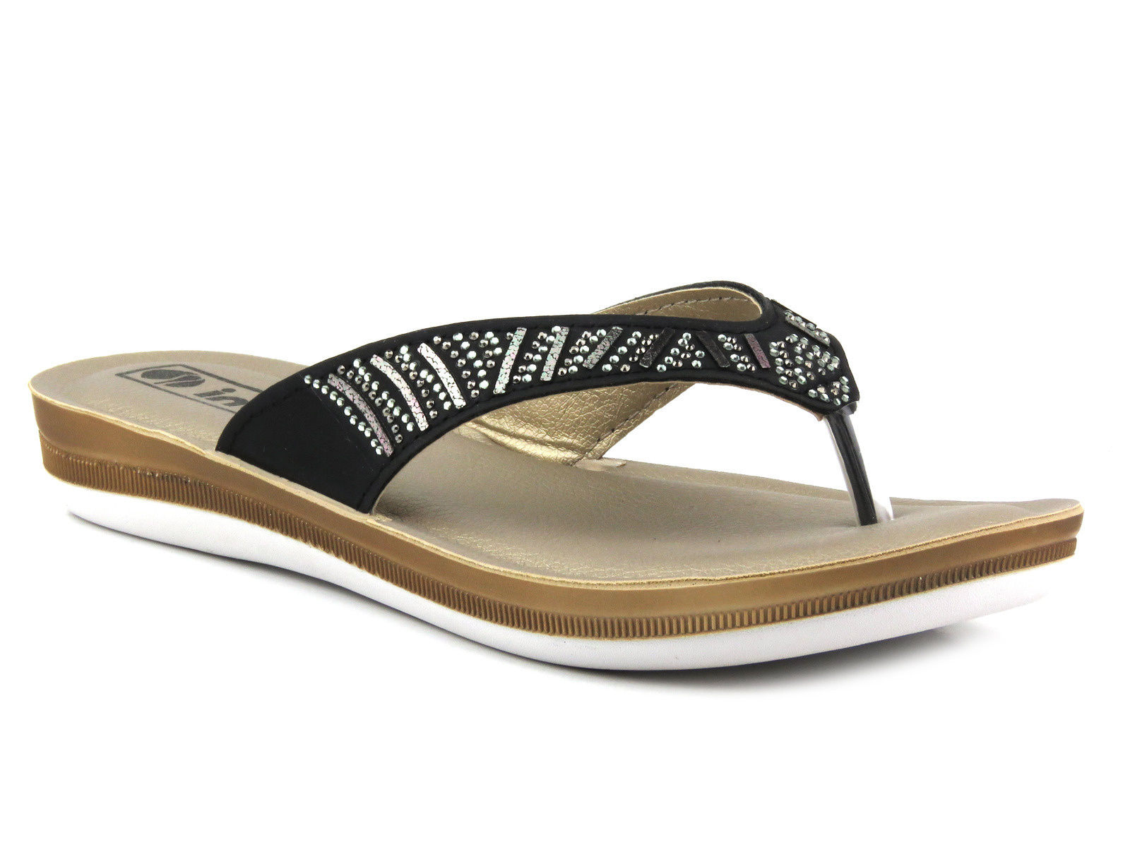 Japonki damskie renomowanej marki Inblu zostały wykonane ze skóry ekologicznej w kolorze czarnym.