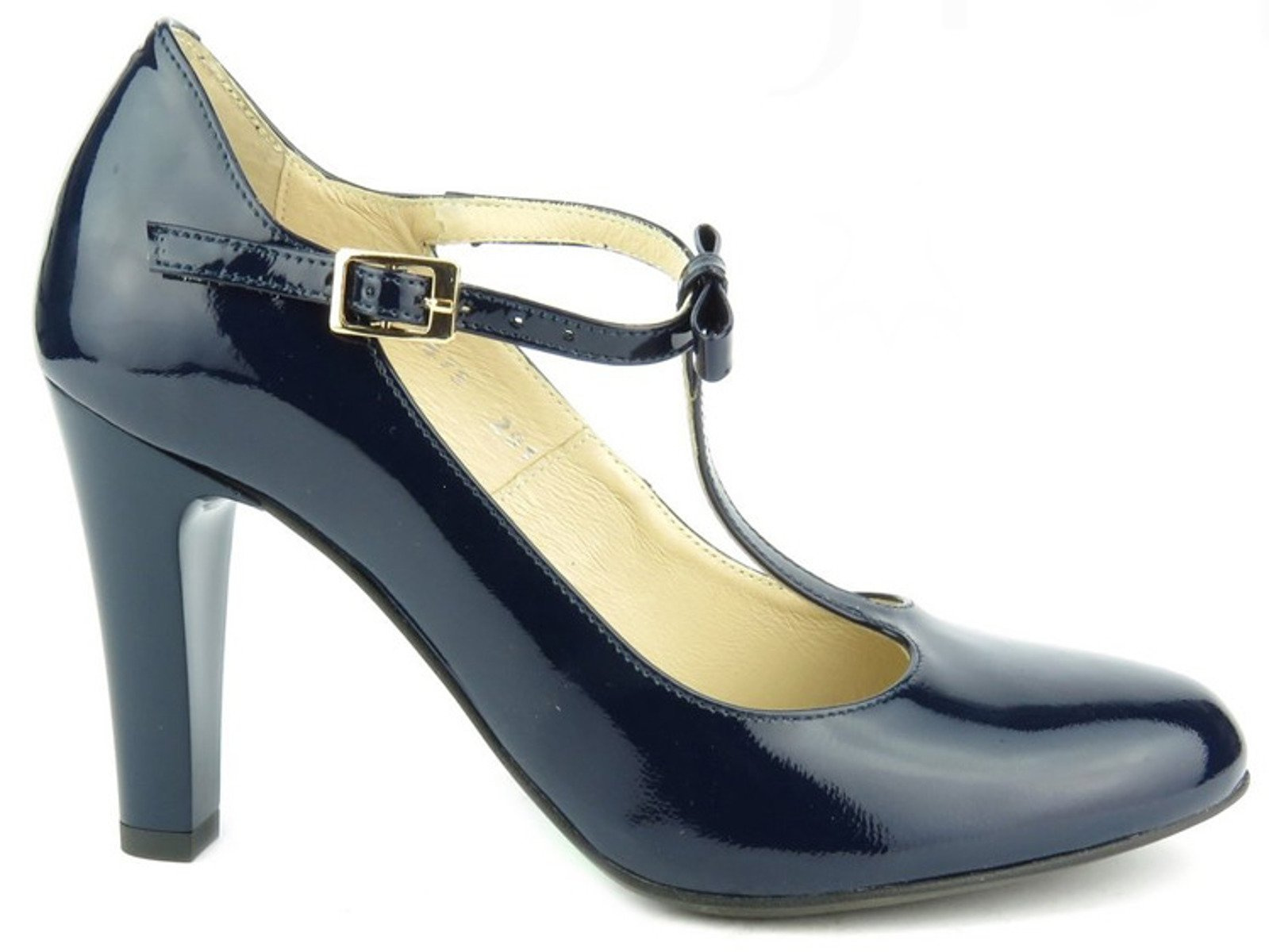 Wykonane zostały z wysokiej jakości skóry naturalnej lakierowanej. Wkładka i środek buta z miękkiej skóry naturalnej licowej zapewniają odpowiedni komfort dla stóp. Klasyczny wzór oraz wyszukany kolor tworzą śliczne połączenie, które warto mieć w swojej szafie. Dzięki zapięciu obuwie nie spada ze stopy.