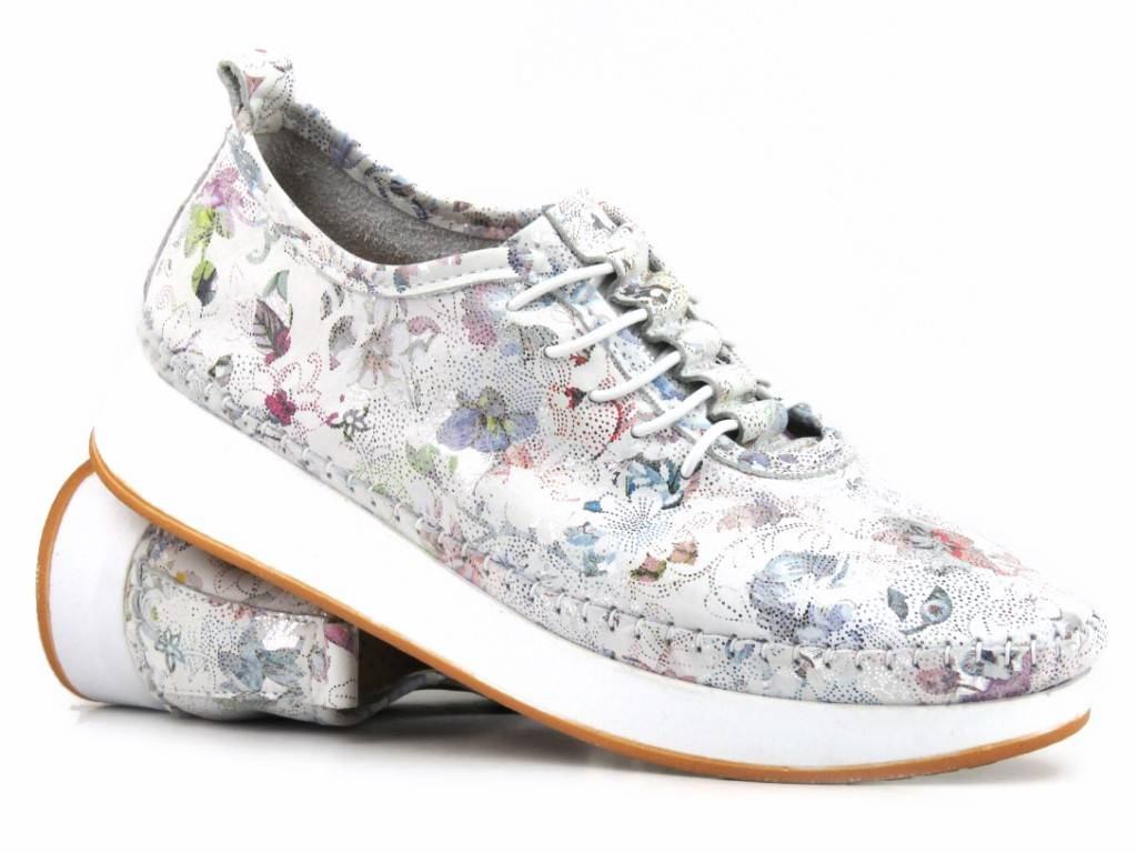 Półbuty damskie Venezia 01422077-2, białe w kwiaty