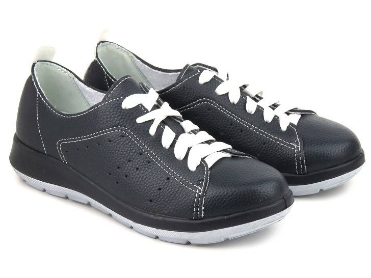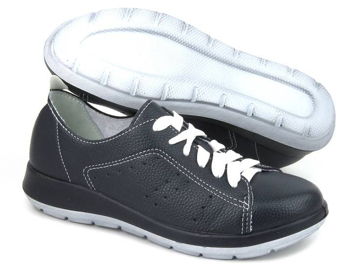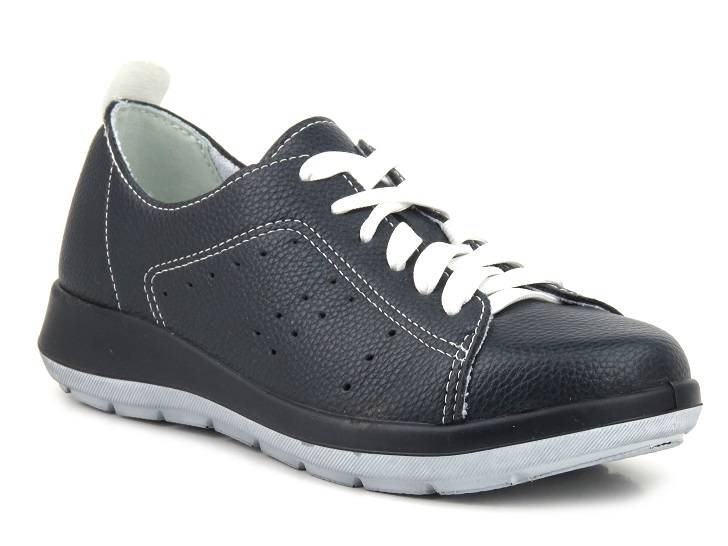 Półbuty damskie renomowanej marki Inblu zostały wykonane z zewnątrz ze skóry ekologicznej w kolorze granatowym.