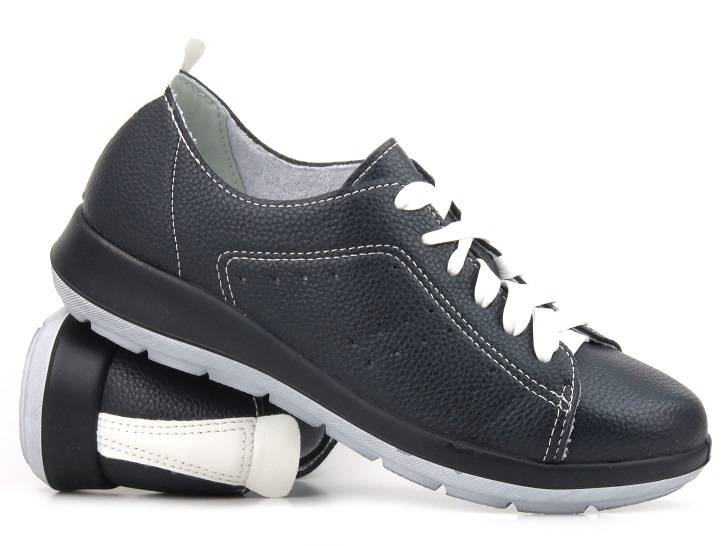 Ciemna cholewka w połączeniu ze sznurowadłami w kontrastowym białym kolorze nadaje fasonowi charakteru.