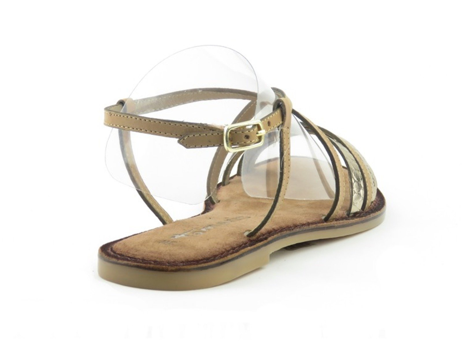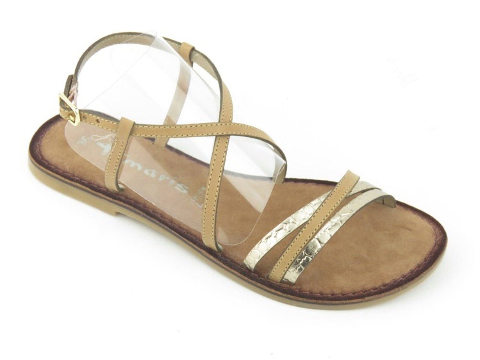 Sandały damskie renomowanej marki Tamaris zostały wykonane z wysokiej jakości skóry naturalnej licowej - miękkiej i przyjemnej w dotyku. Dzięki zapięciu na klamrę, model można dopasować do różnej tęgości stopy. Piaskowy kolor z dodatkiem modnego złota tworzą śliczne połączenie. Buty zostały wyprodukowane przez firmę Tamaris, co gwarantuje doskonałą jakość oraz trwałość. Skórzane sandałki damskie w atrakcyjnej cenie.