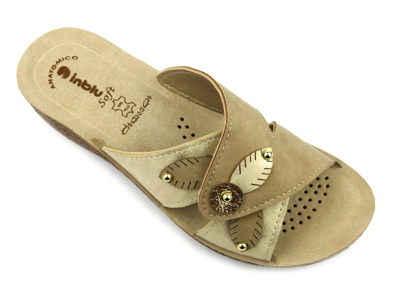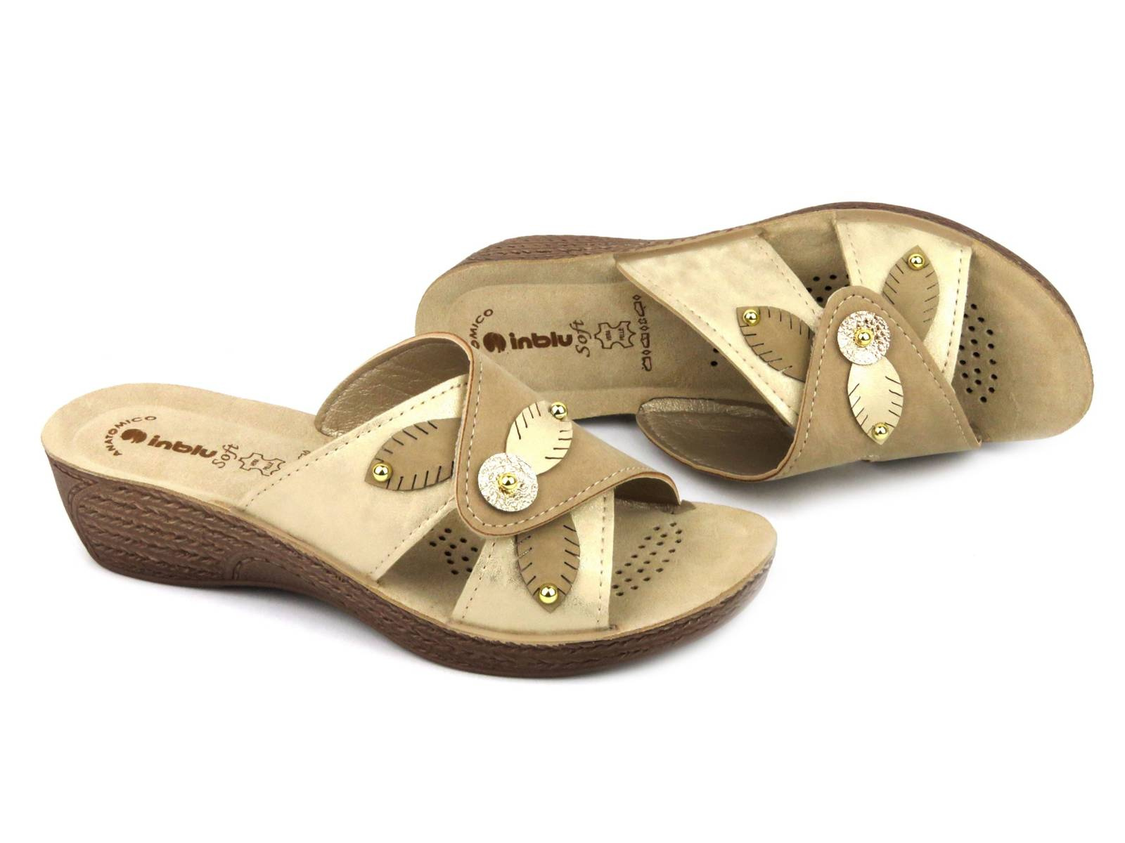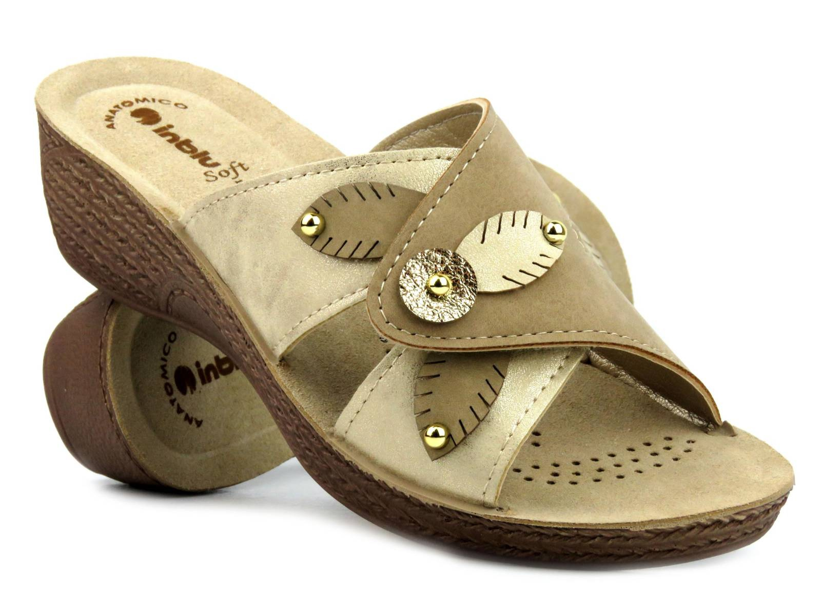 Opinie o Klapki damskie z regulowaną cholewką - INBLU GL-54, piaskowe