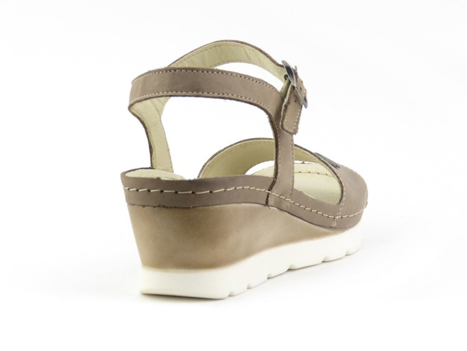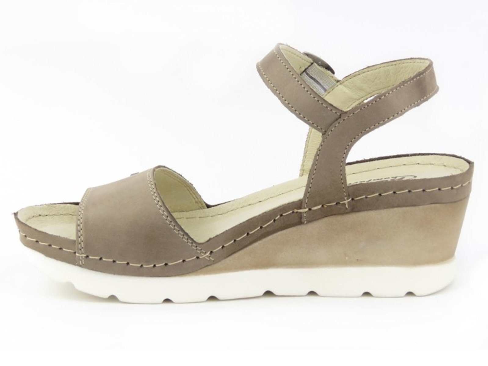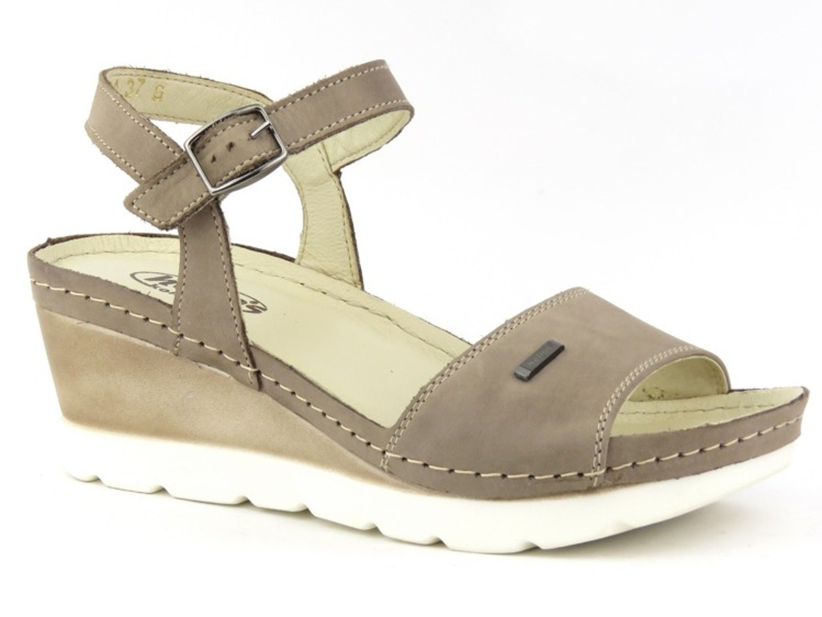 Wygodne sandały damskie na koturnie - Helios Komfort 220, beżowe