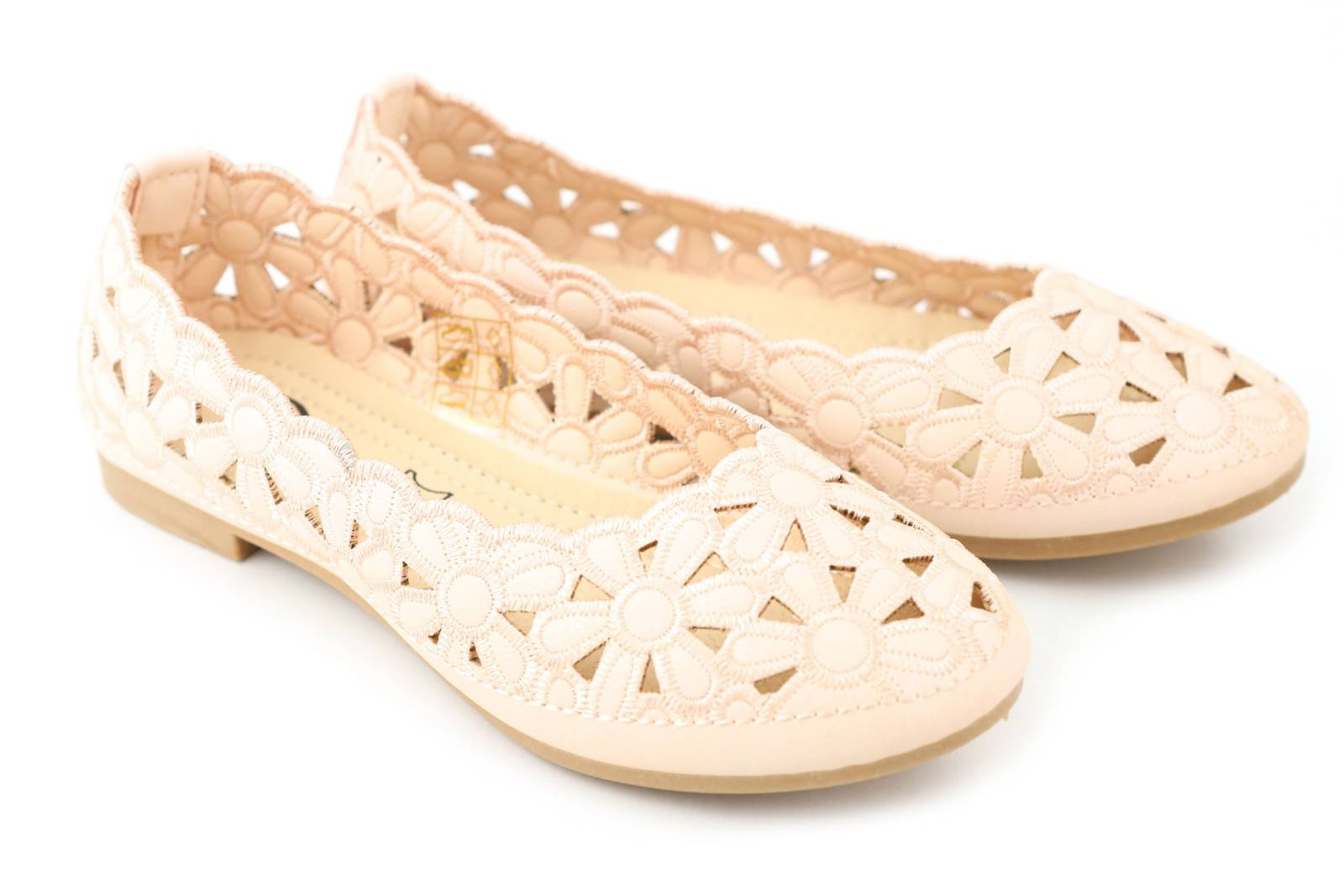 Różowa, ażurowa cholewka w kwiaty nadaje balerinom uroczego wyglądu i z pewnością zachwyci niejedną dziewczynkę.