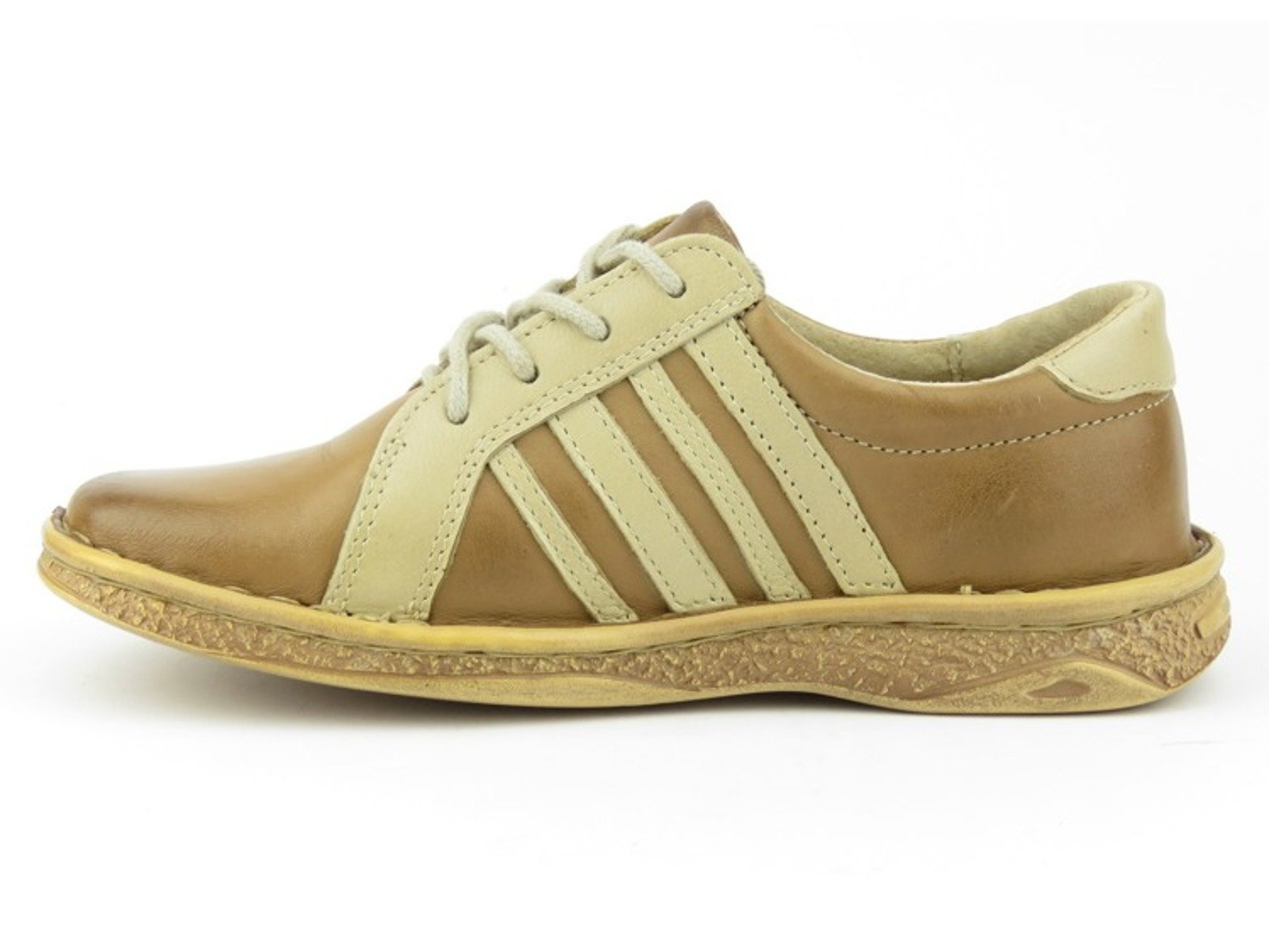 Skórzane półbuty dziecięce sportowe dla chłopca Helios 435, beżowe
