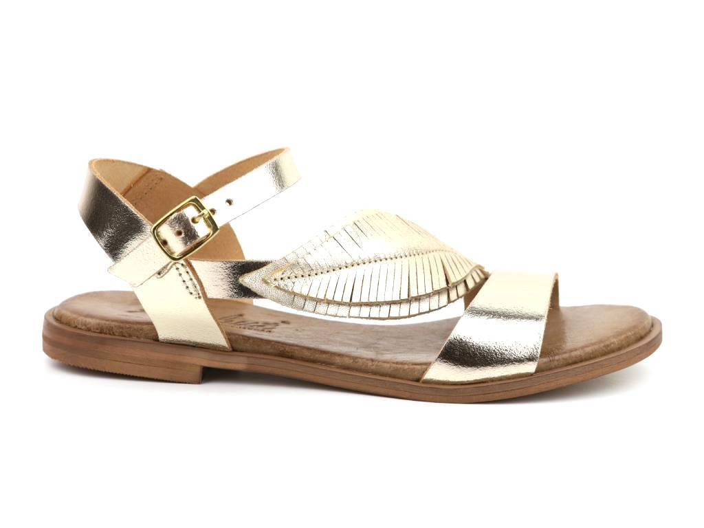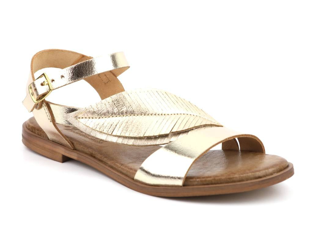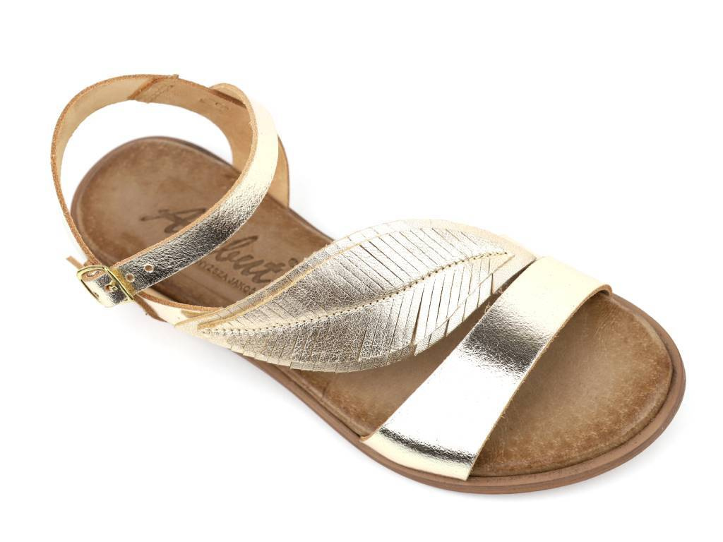 Sandały damskie z ozdobnym liściem - Agxbut 806, złote