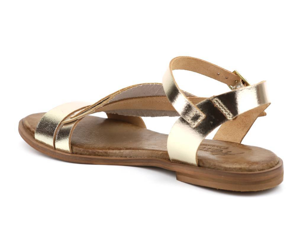 Sandały damskie polskiej marki Agxbut zostały wykonane z wysokiej jakości skóry naturalnej licowej w kolorze złotym.