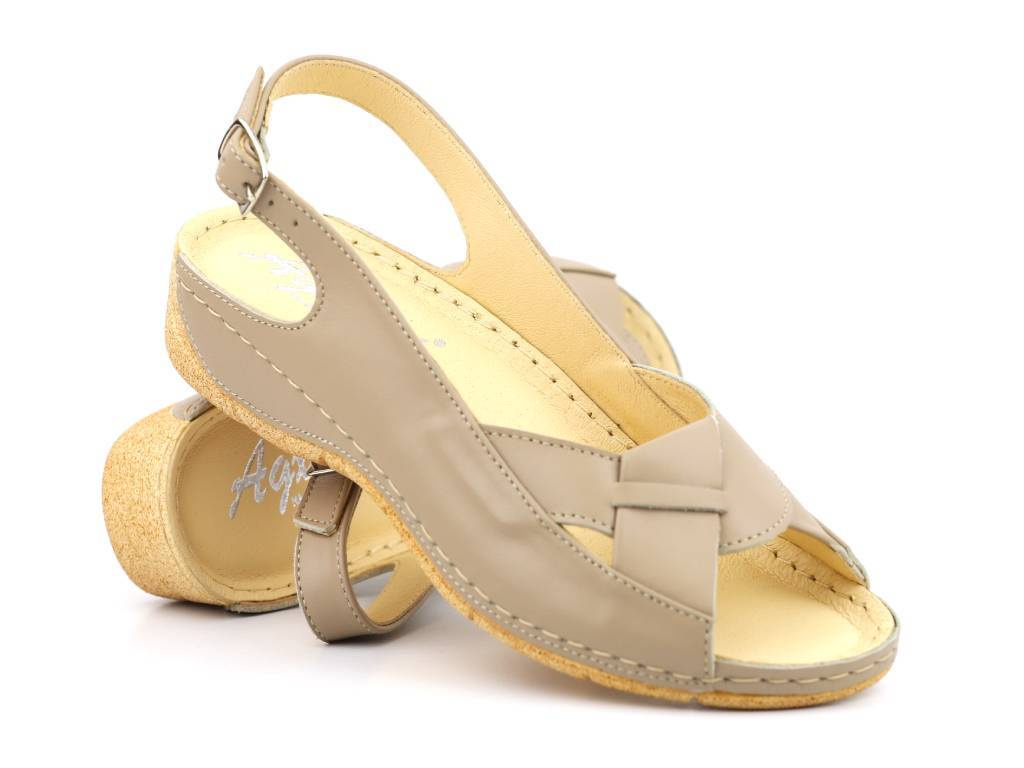 Sandały damskie z miękką wkładką - Agxbut 590, beżowe