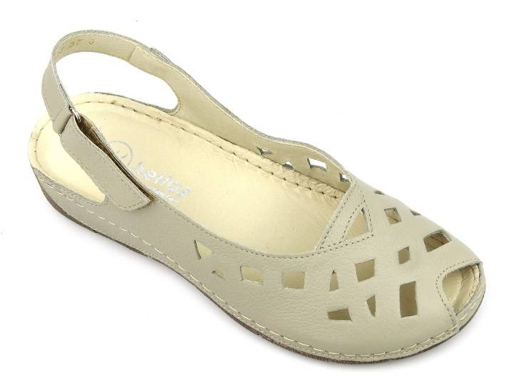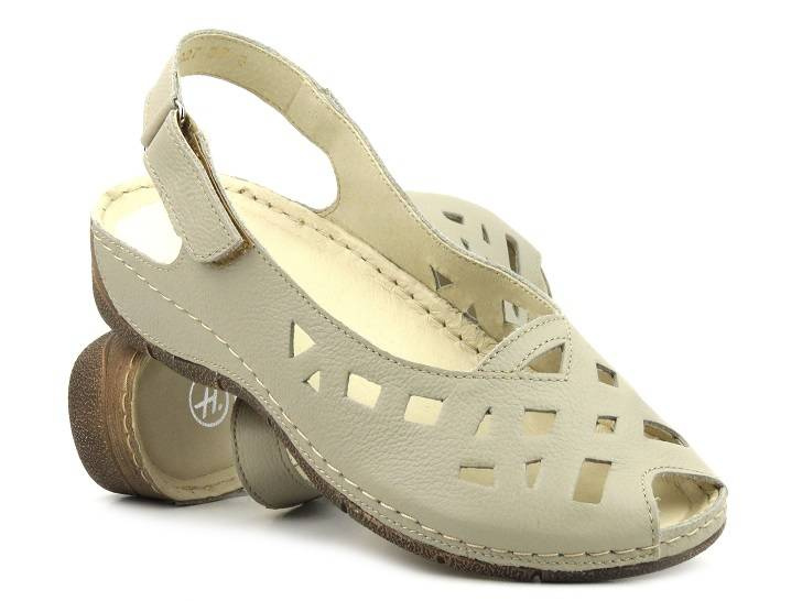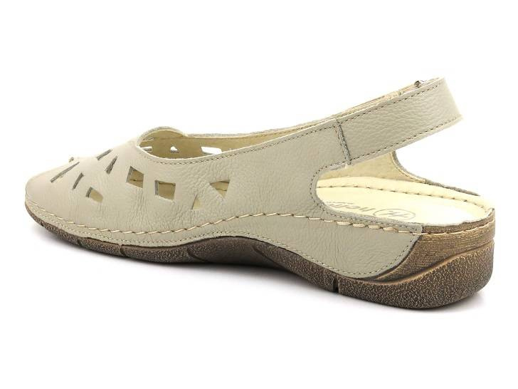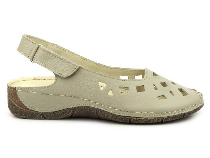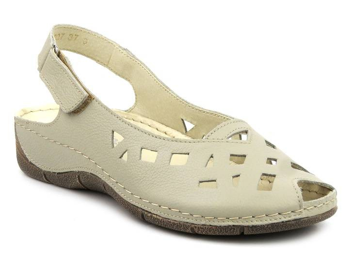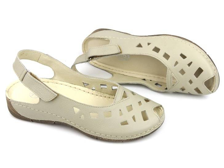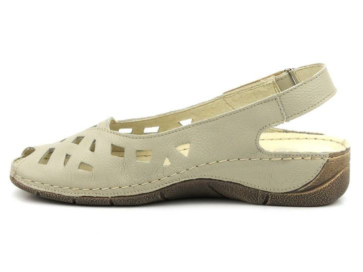 Skórzane sandały damskie z wycięciami - Helios Komfort 4027, ecru