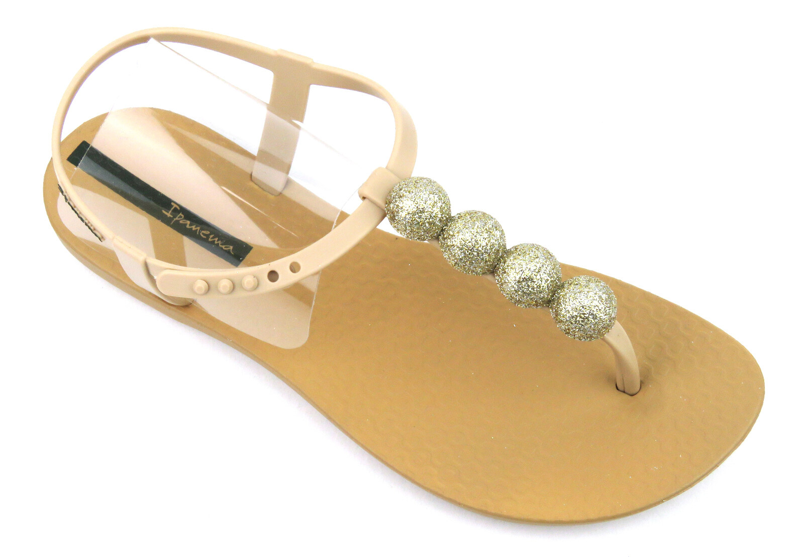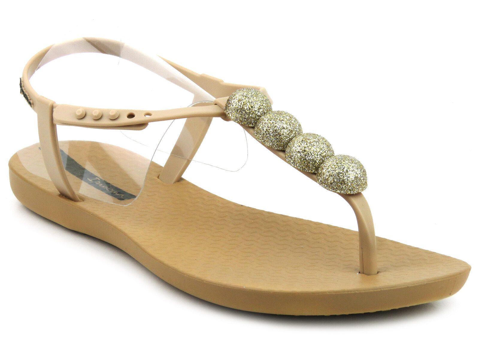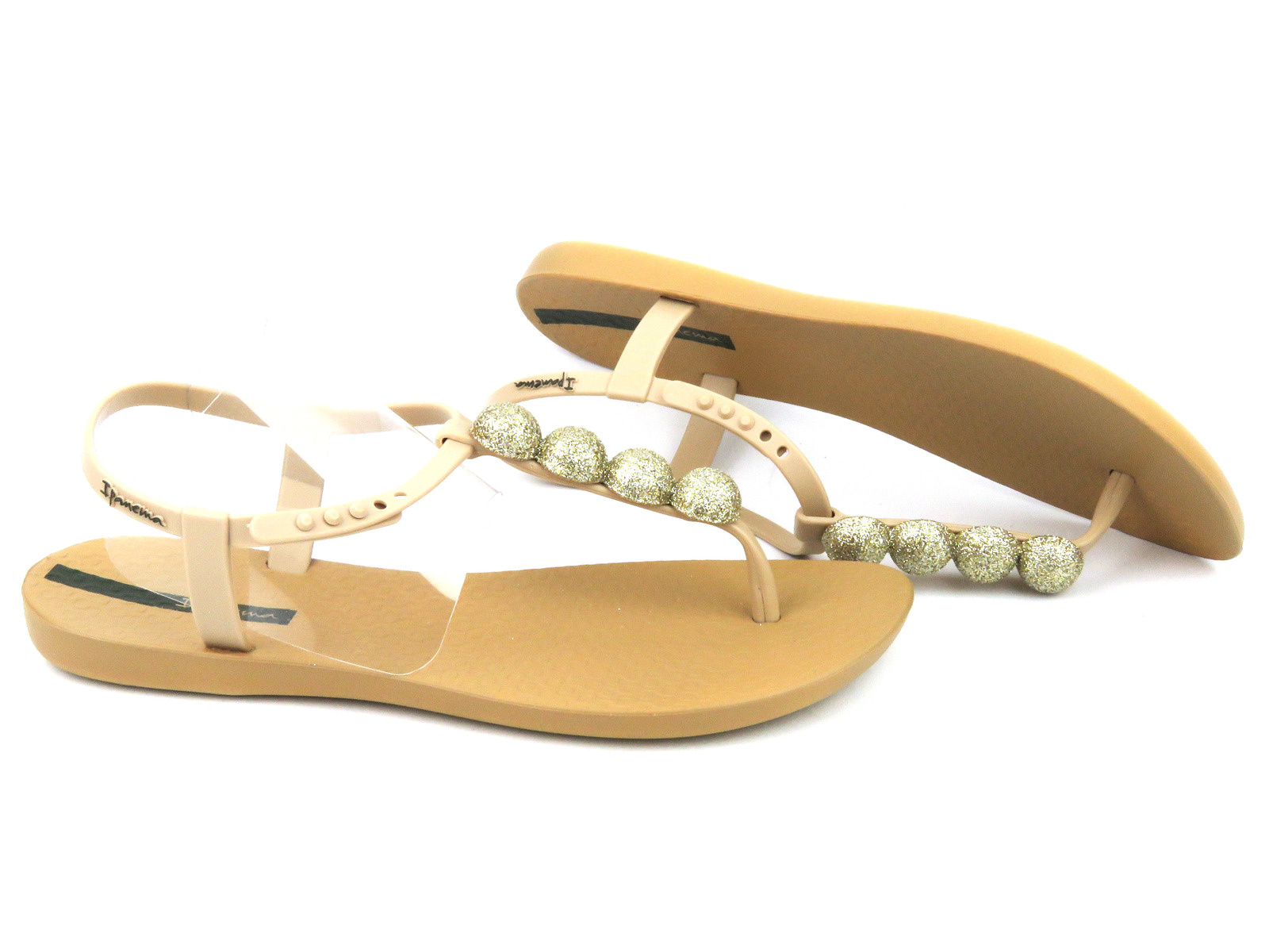 Eleganckie sandały damskie z błyszczącymi kulkami - Ipanema 26751, beżowe