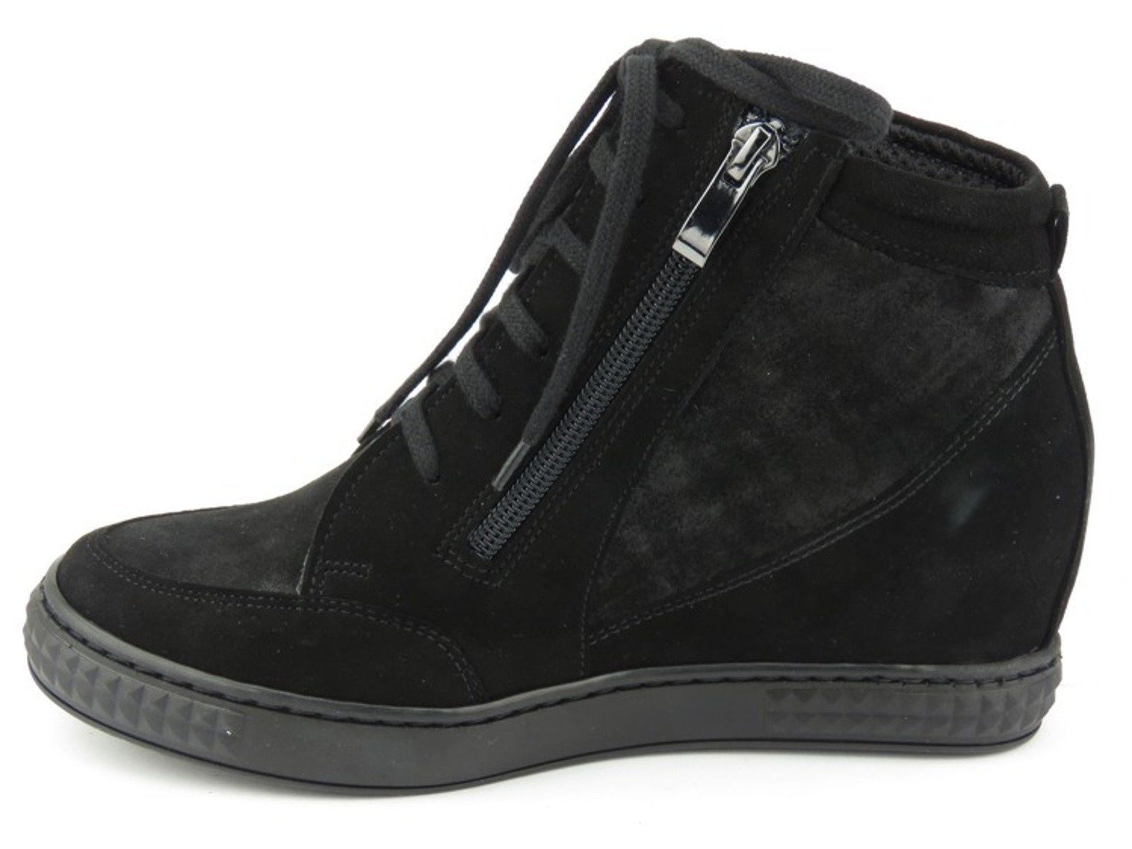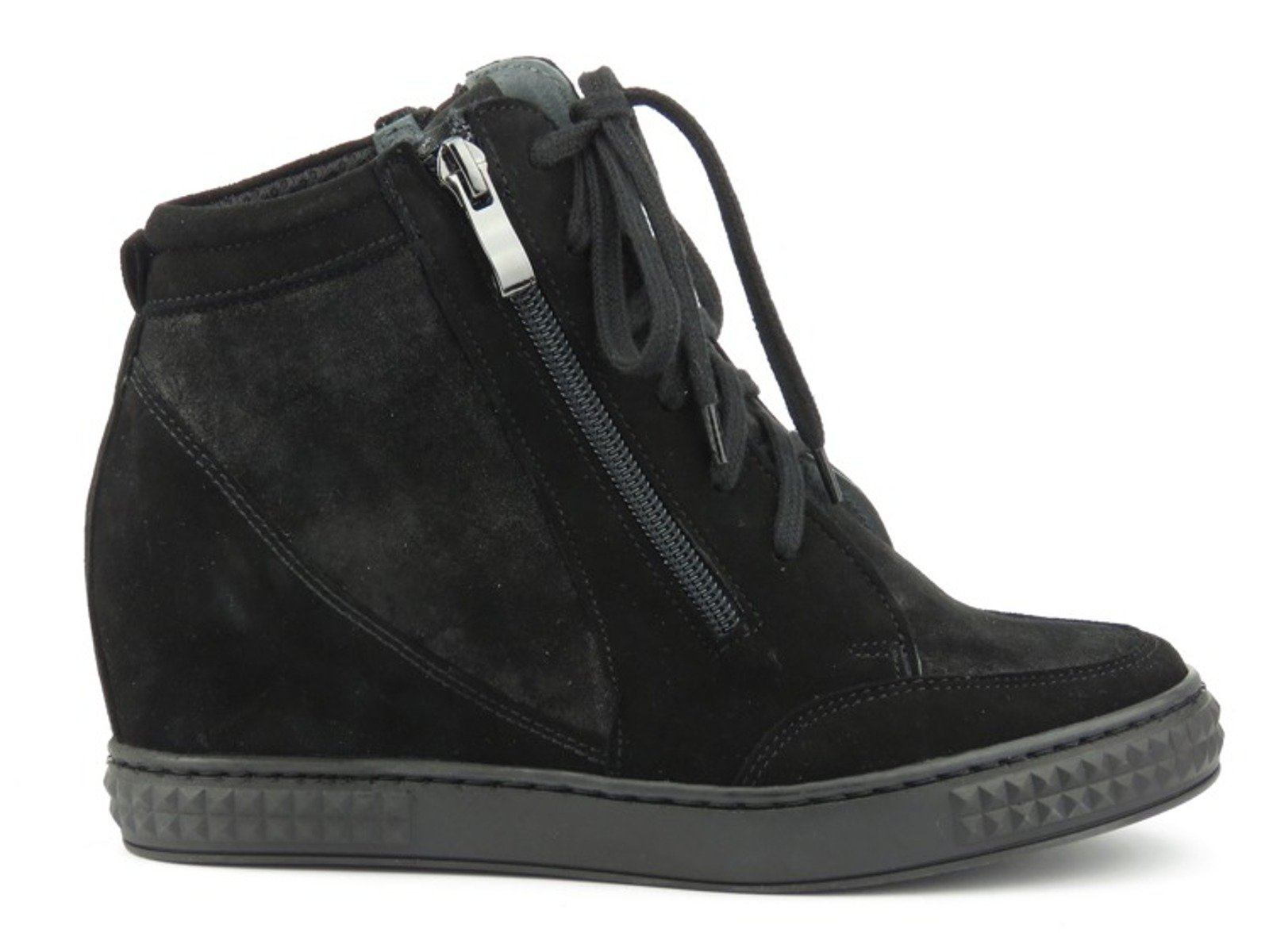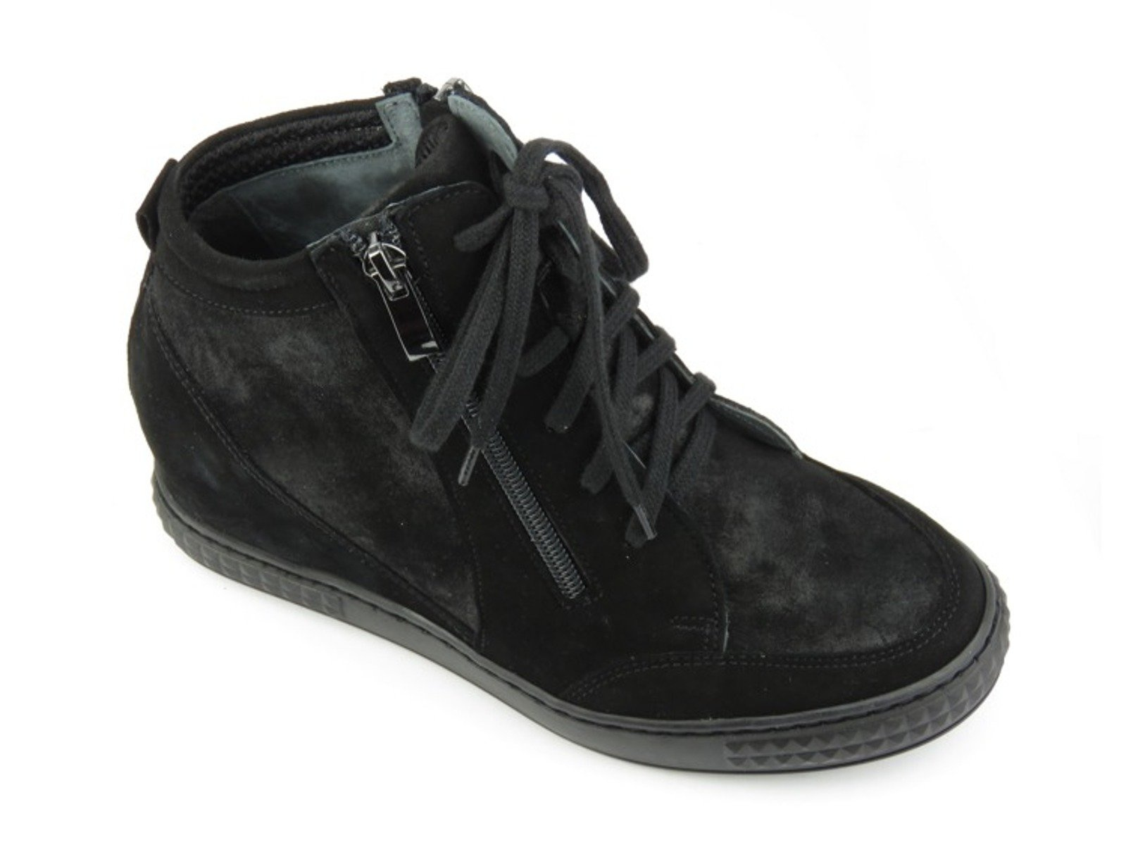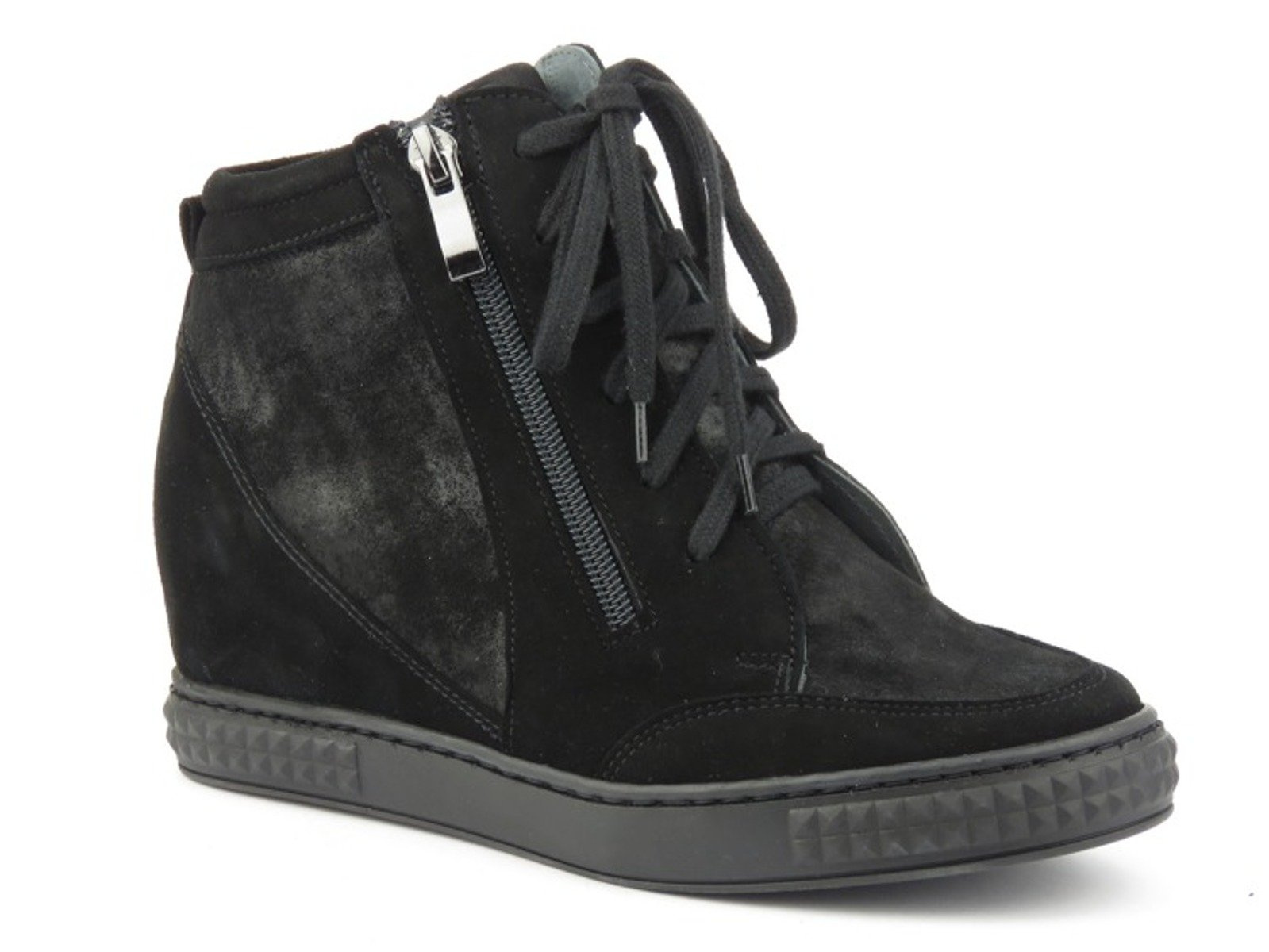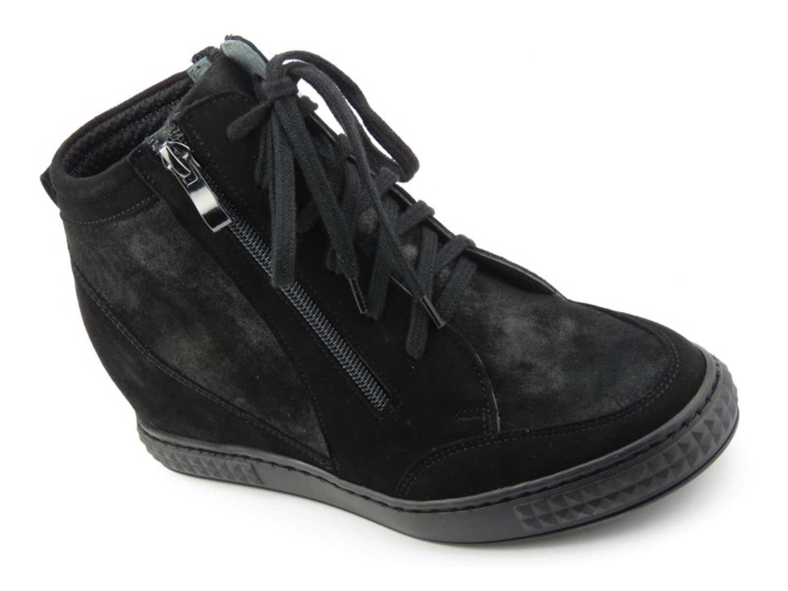 Botki damskie renomowanej marki Venezia zostały wykonane z wysokiej jakości skóry naturalnej zamszowej. Miękka, skórzana wyściółka zapewnia odpowiedni komfort dla stóp. Dwa, symetrycznie ułożone, suwaki pozwalają na szybkie i wygodne zakładanie obuwia, a regulacja sznurowadeł ułatwia jego dopasowanie Wbudowany koturn wysmukla sylwetkę, nie wpływając na pogorszenie wygody chodzenia. Połyskliwe wstawki na cholewce nadają butom uroku i charakteru.