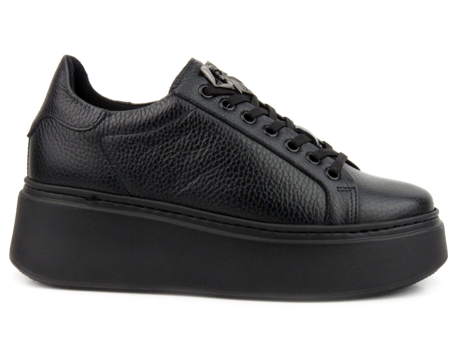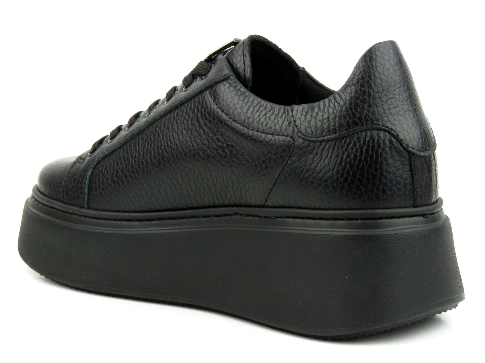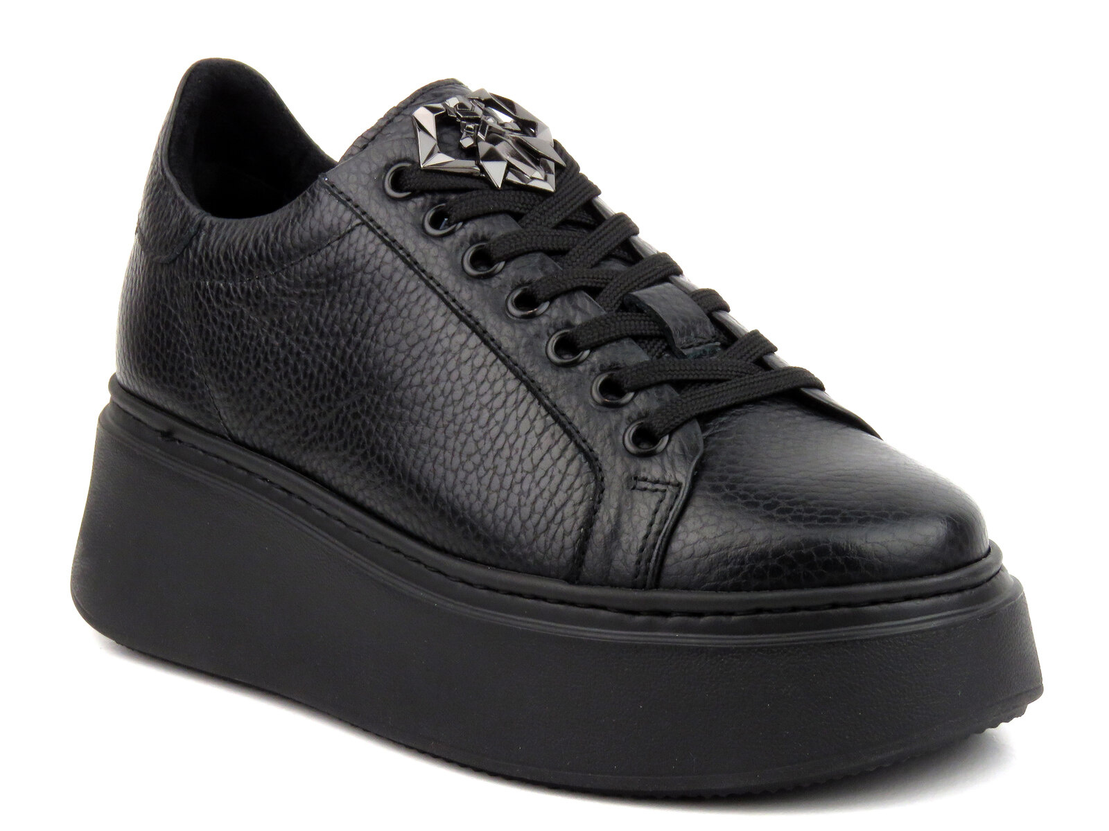Prezentowane sneakersy renomowanej polskiej marki Carinii zostały wykonane z wysokiej jakości skóry naturalnej licowej w kolorze czarnym.