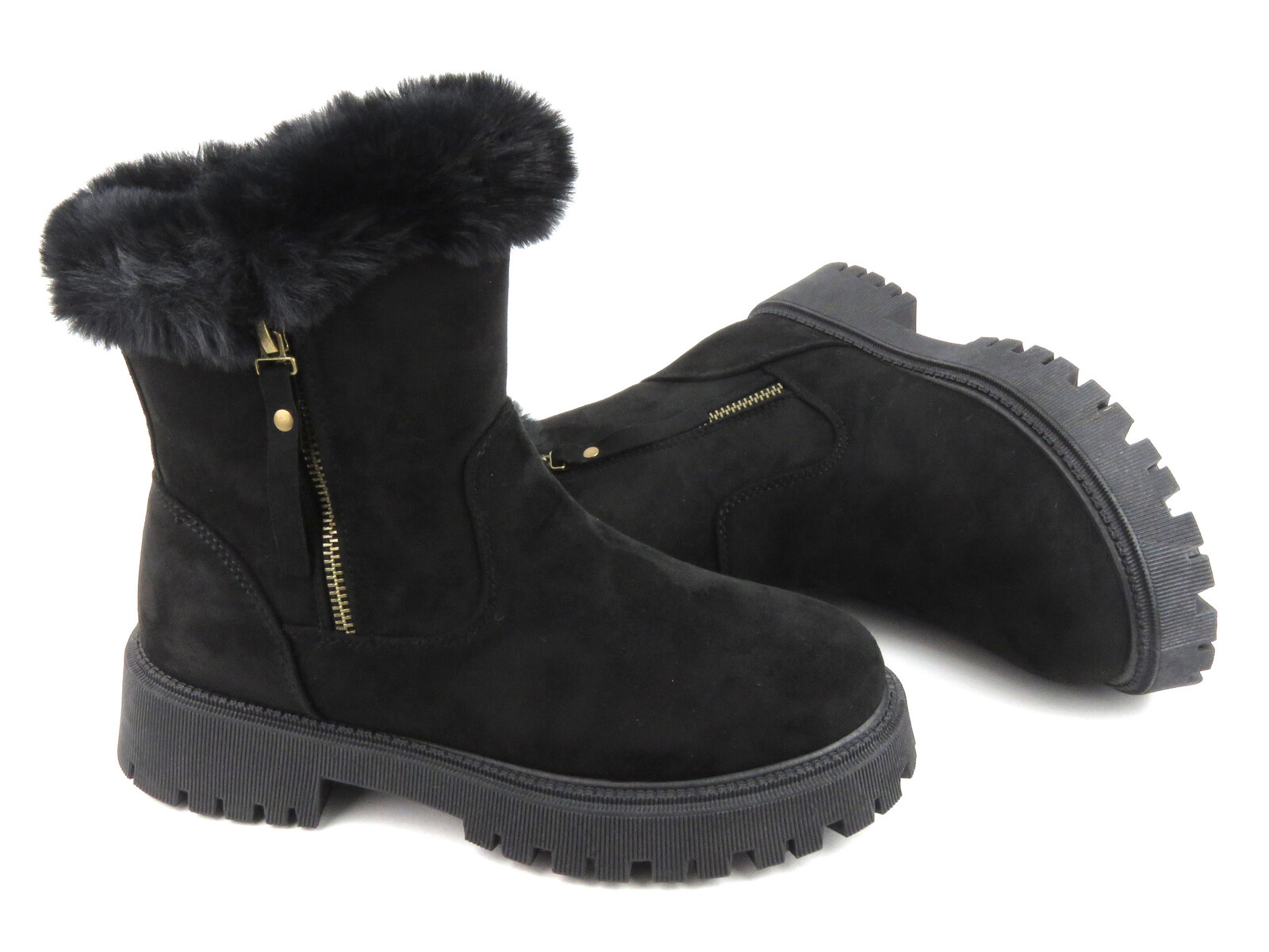 Ciepłe trapery, workery damskie - N.E.W.S. 23BT26-6522 , czarne