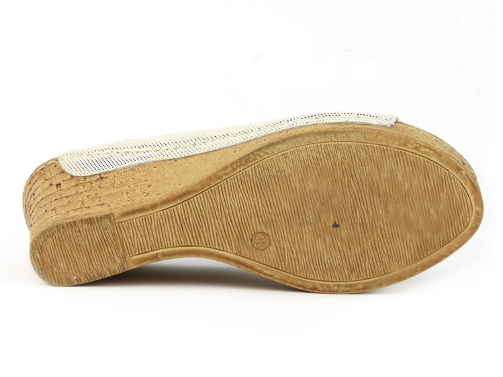 Zostały wykonane z wysokiej jakości skóry naturalnej. Wnętrze i wkładka z miękkiej skóry naturalnej zapewniają odpowiedni komfort dla stóp. Połyskująca cholewka sprawia, że buty wyglądają niesamowicie oryginalnie i ciekawie. Obcas na koturnie wysmukla sylwetkę.