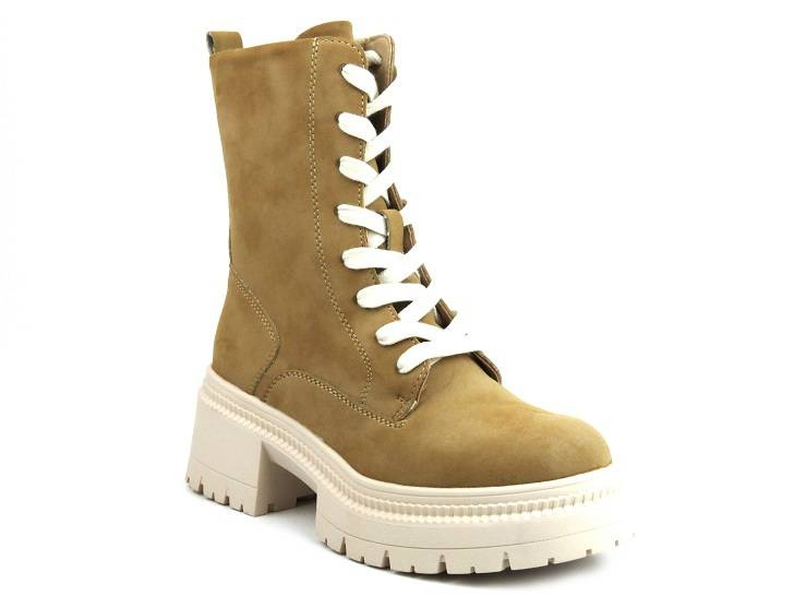Trapery damskie renomowanej marki Tamaris zostały wykonane z wysokiej jakości skóry ekologicznej zamszowej w kolorze jasno brązowym.