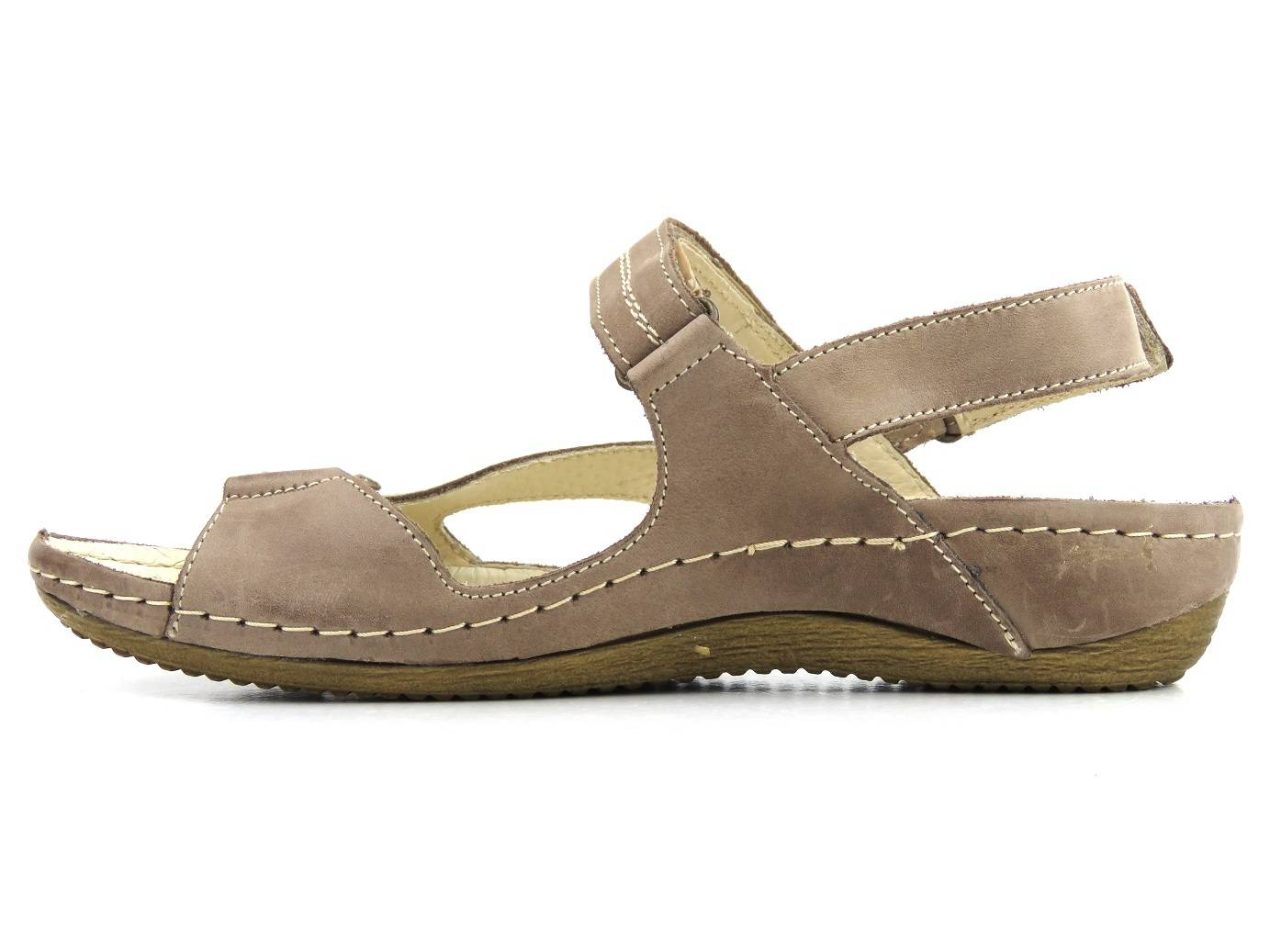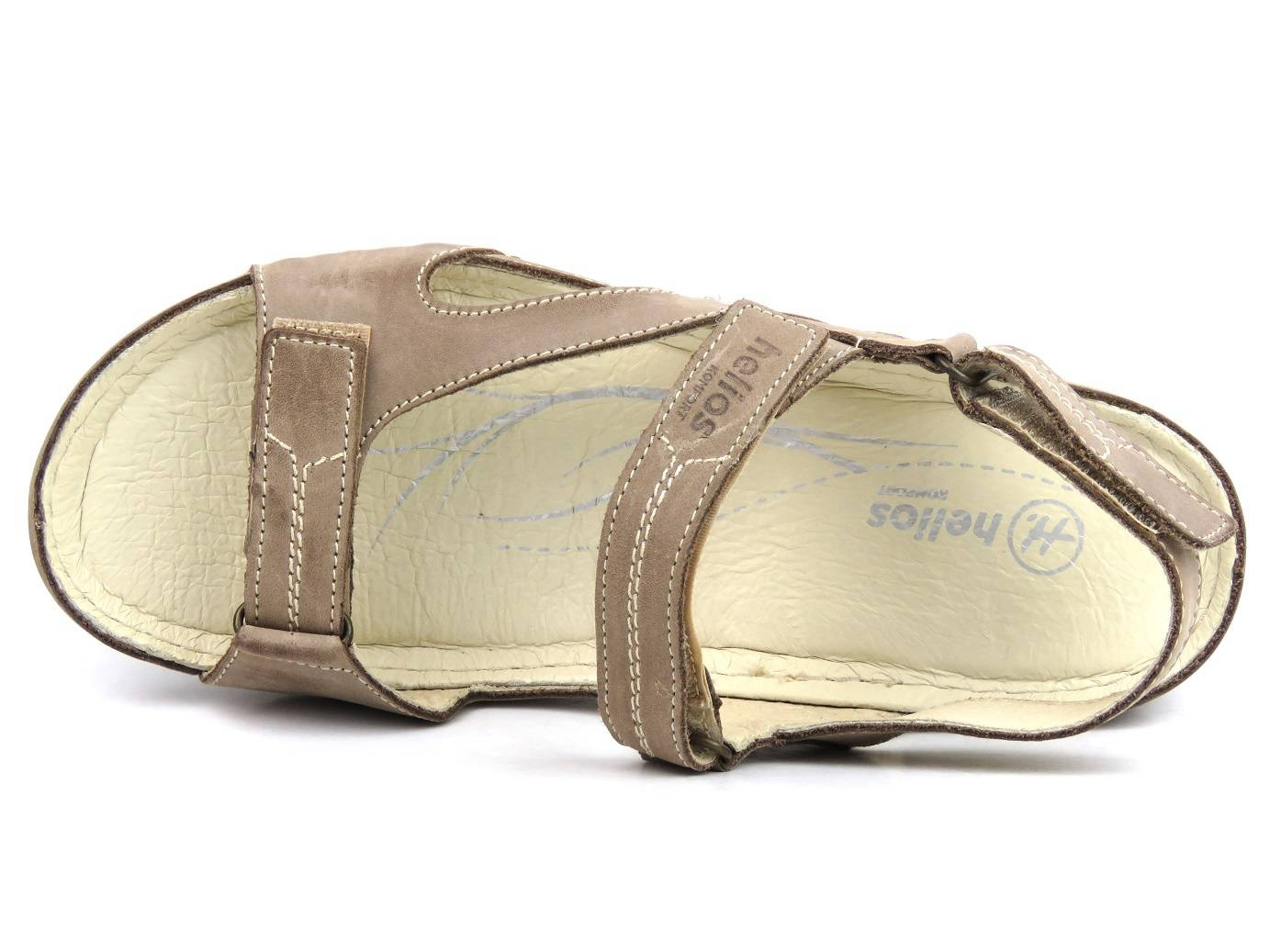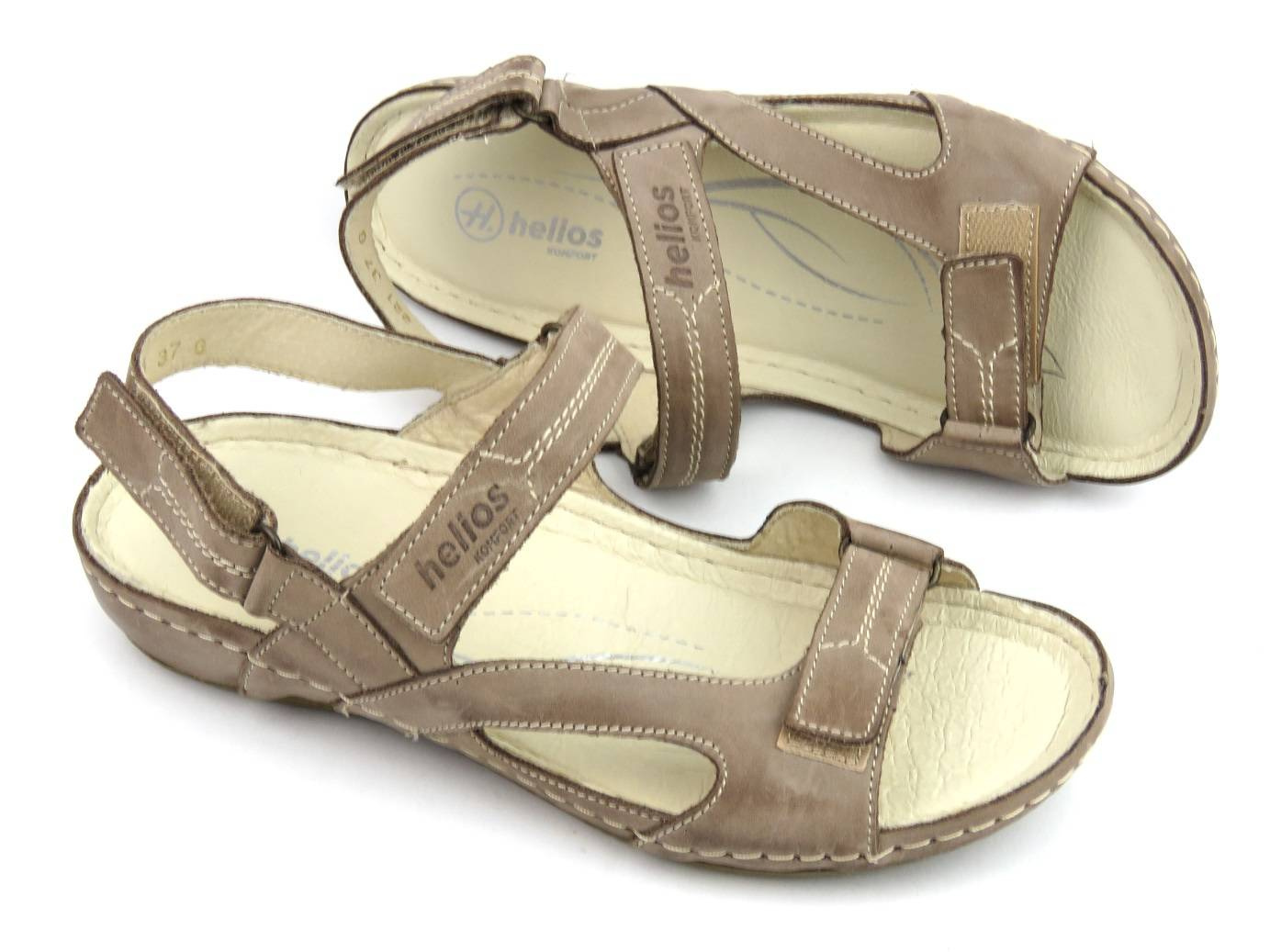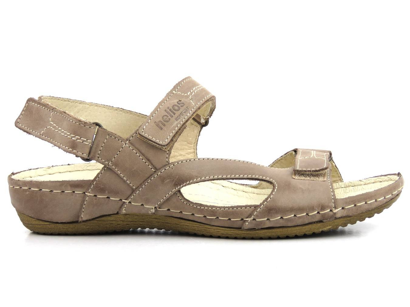 Sandały damskie cenionej polskiej marki Helios Komfort zostały wykonane z wysokiej jakości skóry naturalnej licowej. Miękka, skórzana wyściółka zapewnia wysoki komfort. Pod wkładką znajduje się miękka gąbka SOFT dla wygody każdego kroku. Regulowane paski na trzy rzepy ułatwiają dopasowanie. Podeszwa z PU jest lekka i elastyczna, co pozwala na naturalne wygięcie stopy w trakcie chodzenia. Sportowe sandałki świetnie sprawdzą się latem do codziennego chodzenia czy na różne wyjazdy.
