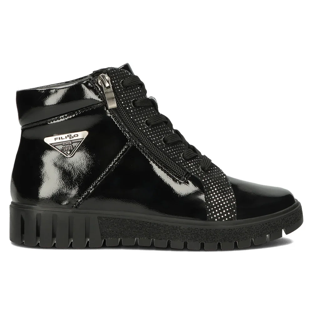 Lakierowane botki Filippo łączą elegancję z casualem - świetnie wpasują się w wiele stylizacji. Możesz je założyć zarówno do spodni, jak i do spódnicy - łącz je swobodnie!