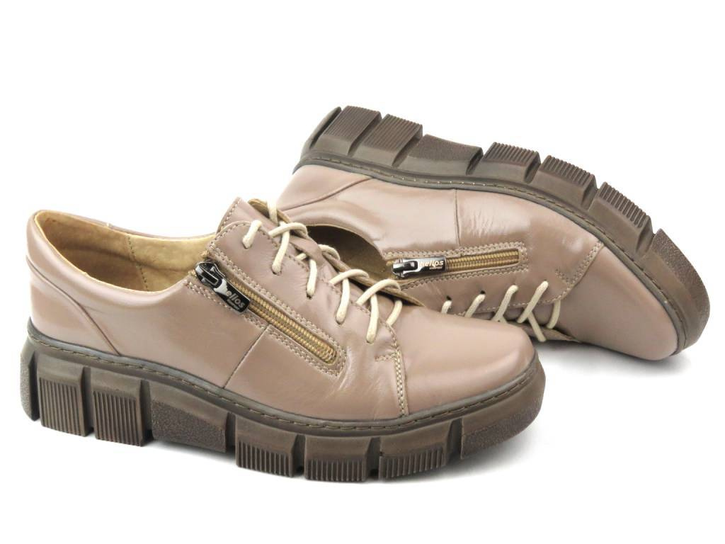 Półbuty damskie cenionej polskiej marki Helios Komfort zostały wykonane z wysokiej jakości skóry naturalnej w kolorze beżowym.