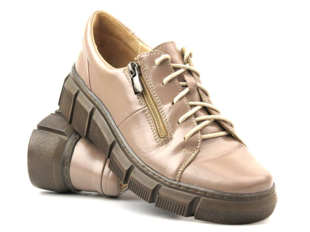 Skórzane półbuty damskie polskiej marki - HELIOS Komfort 413, beż 2