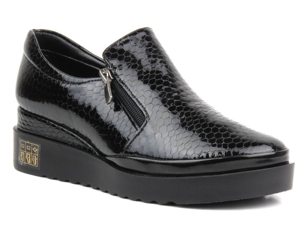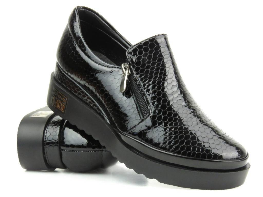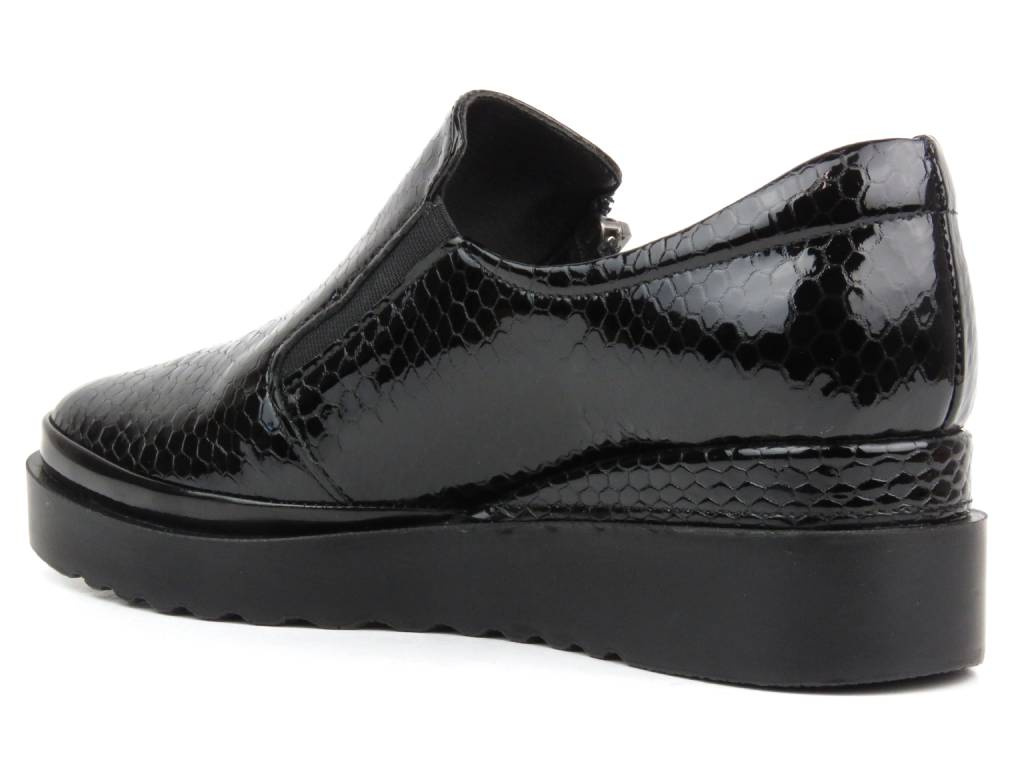 Półbuty damskie ze skóry naturalnej lakierowane - VENEZIA 020018, czarne