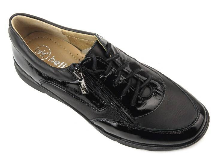 Półbuty damskie cenionej polskiej marki Helios Komfort zostały wykonane z wysokiej jakości skóry naturalnej w czarnym kolorze.
