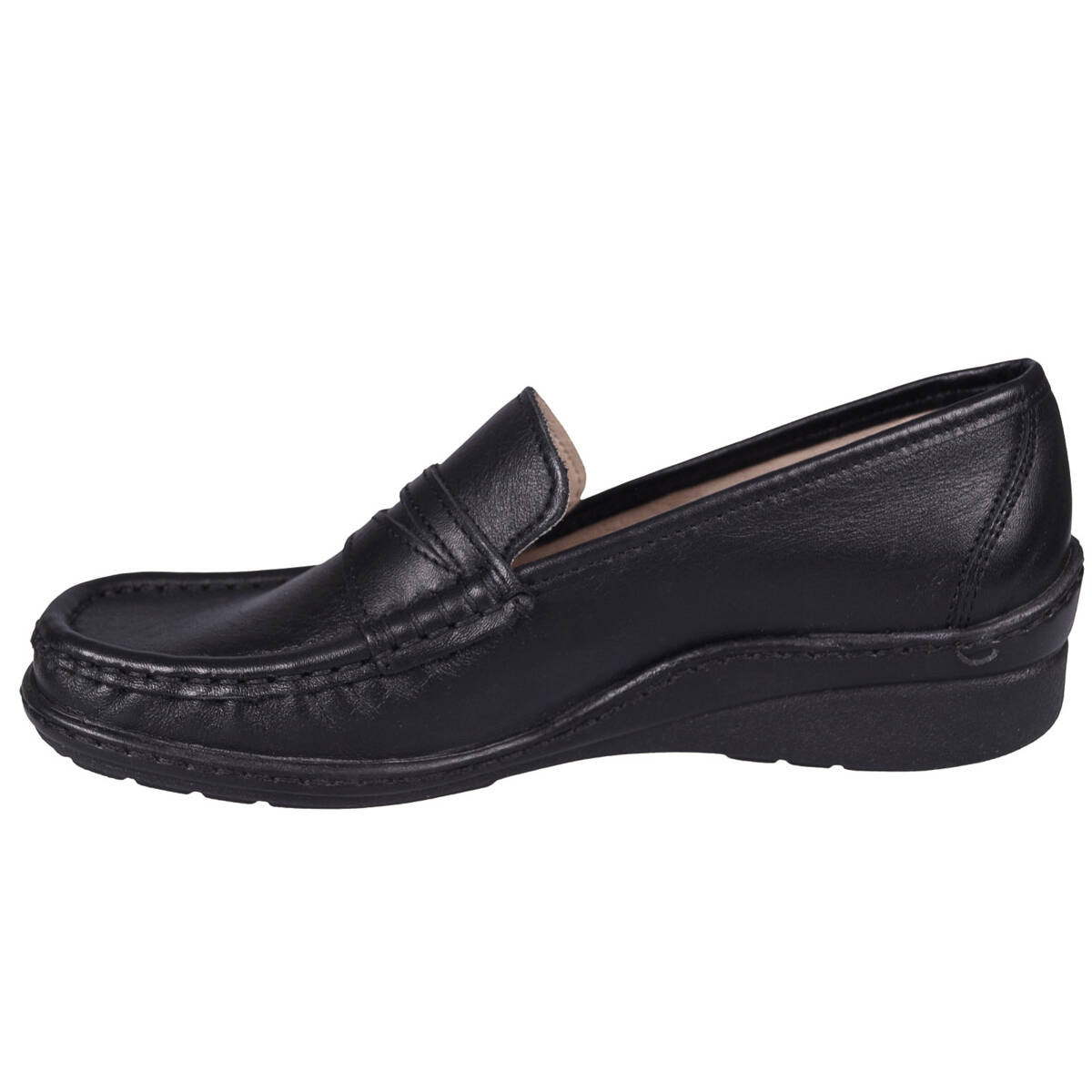 Skórzane półbuty, mokasyny damskie na wiosnę i lato - Syrena 1532, czarne