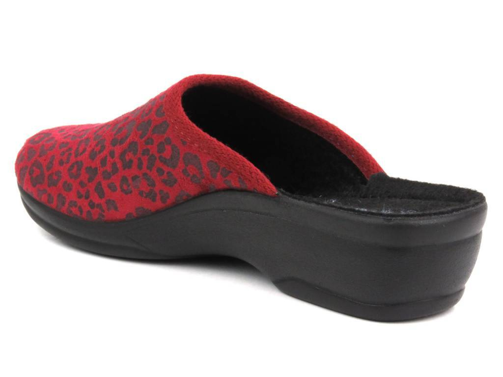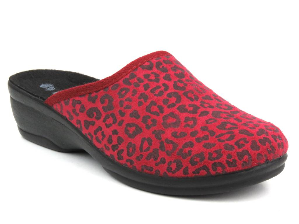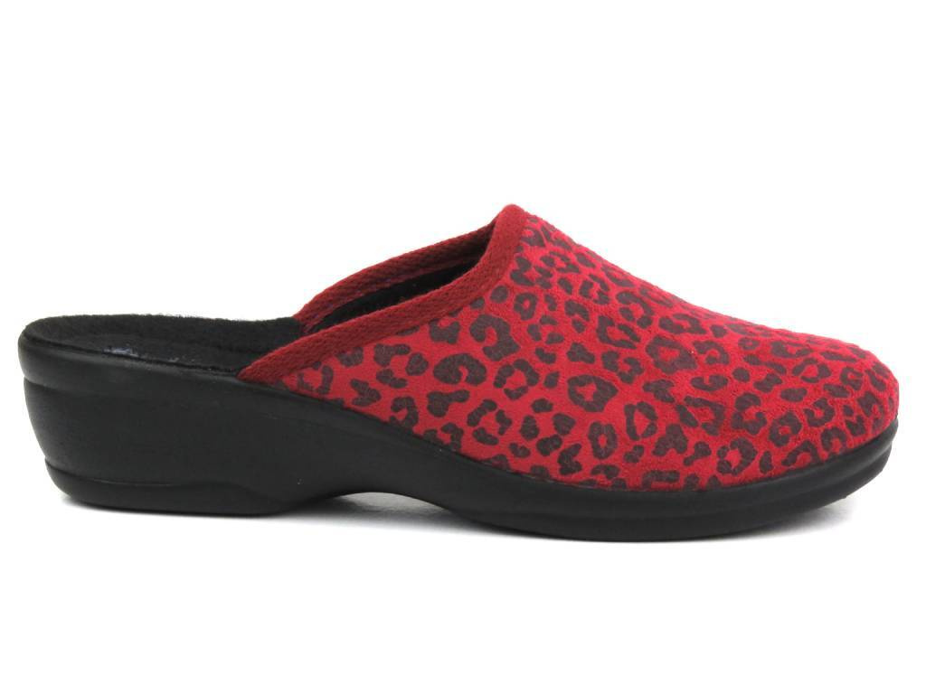 Wierzch stanowi przyjemny materiał w kolorze bordowym z ciekawym zdobieniem a'la panterka.