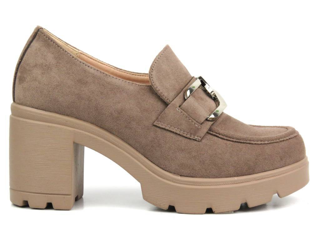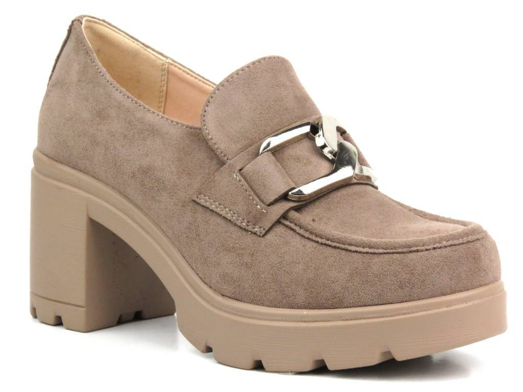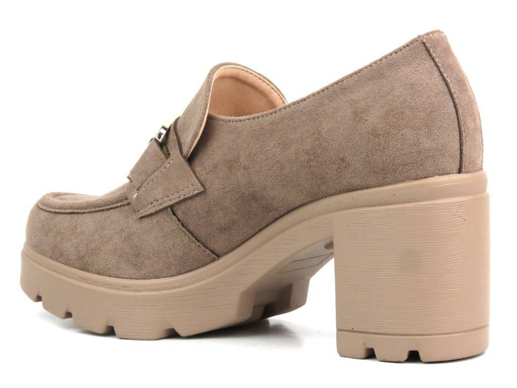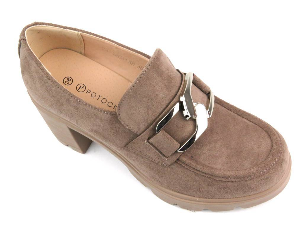 Czółenka, półbuty damskie na obcasie - Potocki 24-12041, khaki